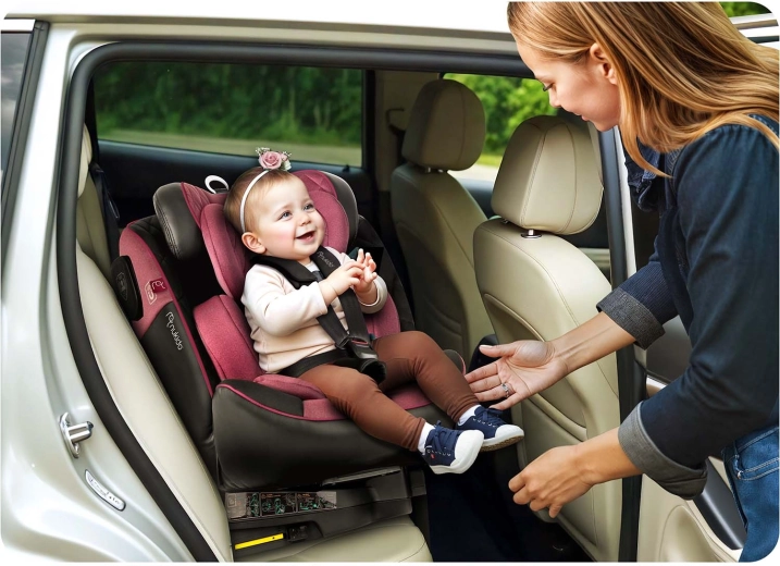 - 5‑točkovni pasovi za male otroke, kasneje uporaba avtomobilskega pasu.