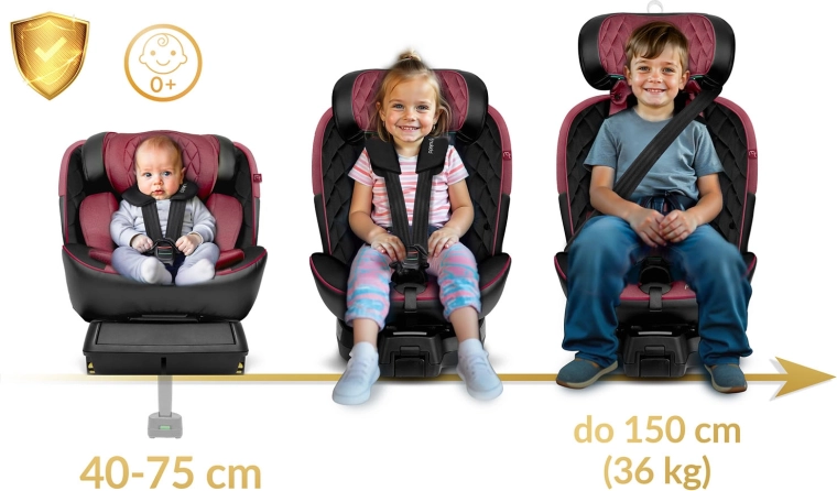 - Razpon i‑Size 40–150 cm – en sedež od rojstva do približno 12 let.