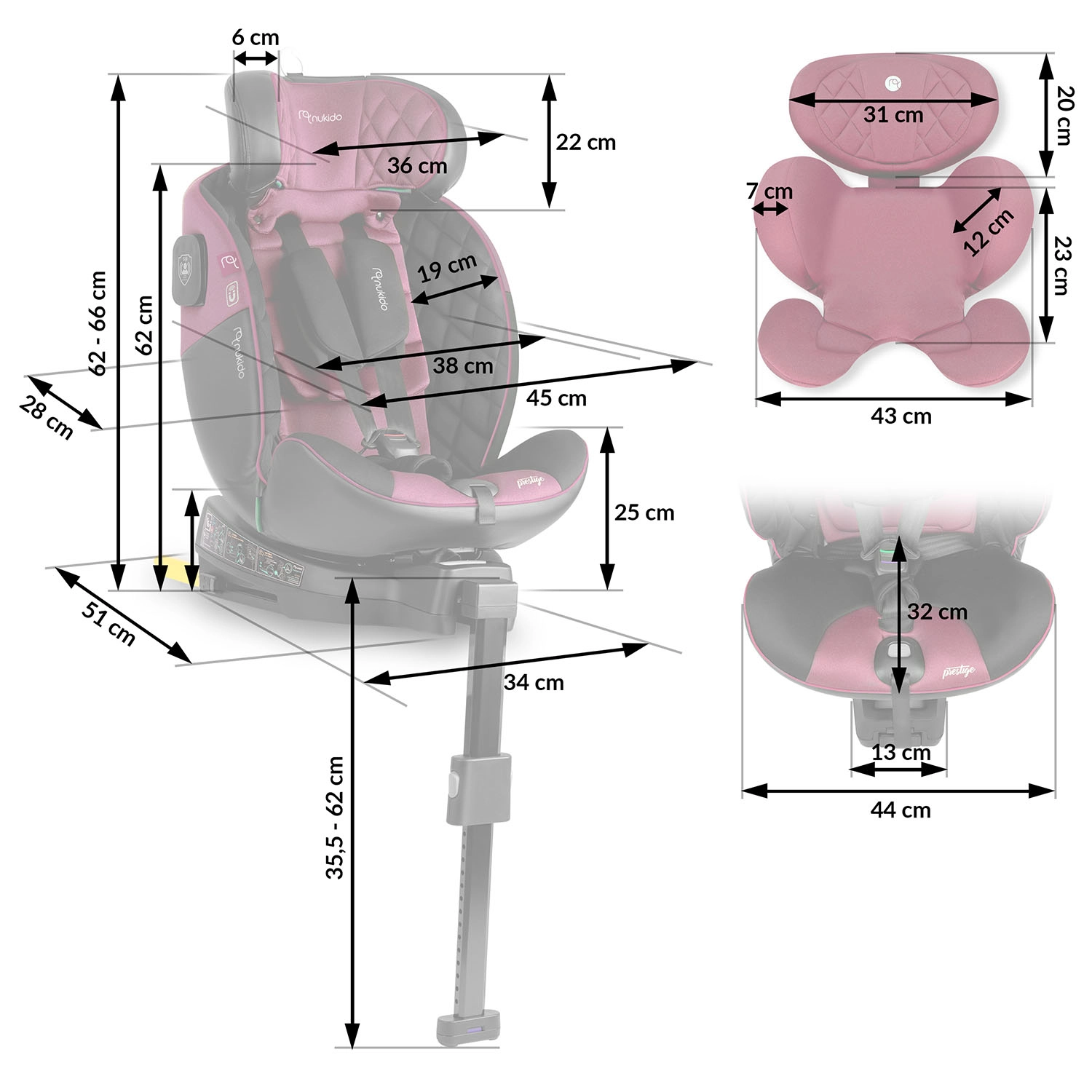 Avtosedež Nukido Prestige Line je zasnovan za maksimalno varnost in udobje od višine 40 do 150 cm. Vrtljivi sistem 360° omogoča, da otroka preprosto pripnete obrnjenega proti vratom ter izberete vožnjo v nasprotni smeri (RWF) do 105 cm ali v smeri vožnje (FWF) za večje otroke. ISOFIX in stabilizacijska noga zagotavljata čvrsto pritrditev, medtem ko SIP krepi zaščito glave, vratu in hrbtenice pri bočnem trku.