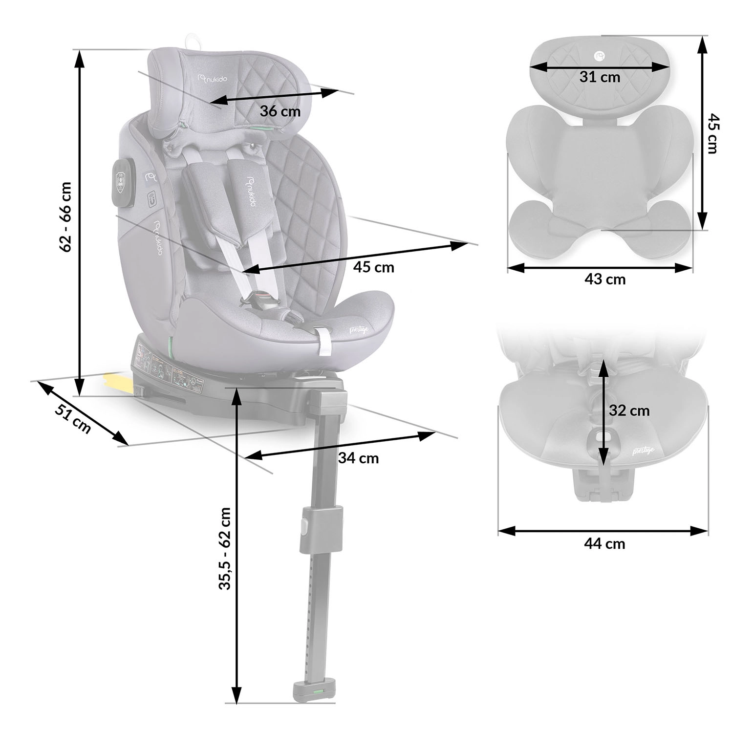 Avtosedež Nukido Prestige Line združuje vrhunske varnostne elemente z maksimalnim udobjem in praktičnostjo za vsakodnevna potovanja. Zaradi vrtljive osnove 360° otroka zlahka pripnete s strani, medtem ko SIP – Side Impact Protection z ojačanimi bočnicami ščiti glavo, vrat in hrbtenico pri bočnem trku. Konstrukcija ustreza standardu ECE R129 (i-Size) in raste z otrokom od rojstva do približno 12 let.