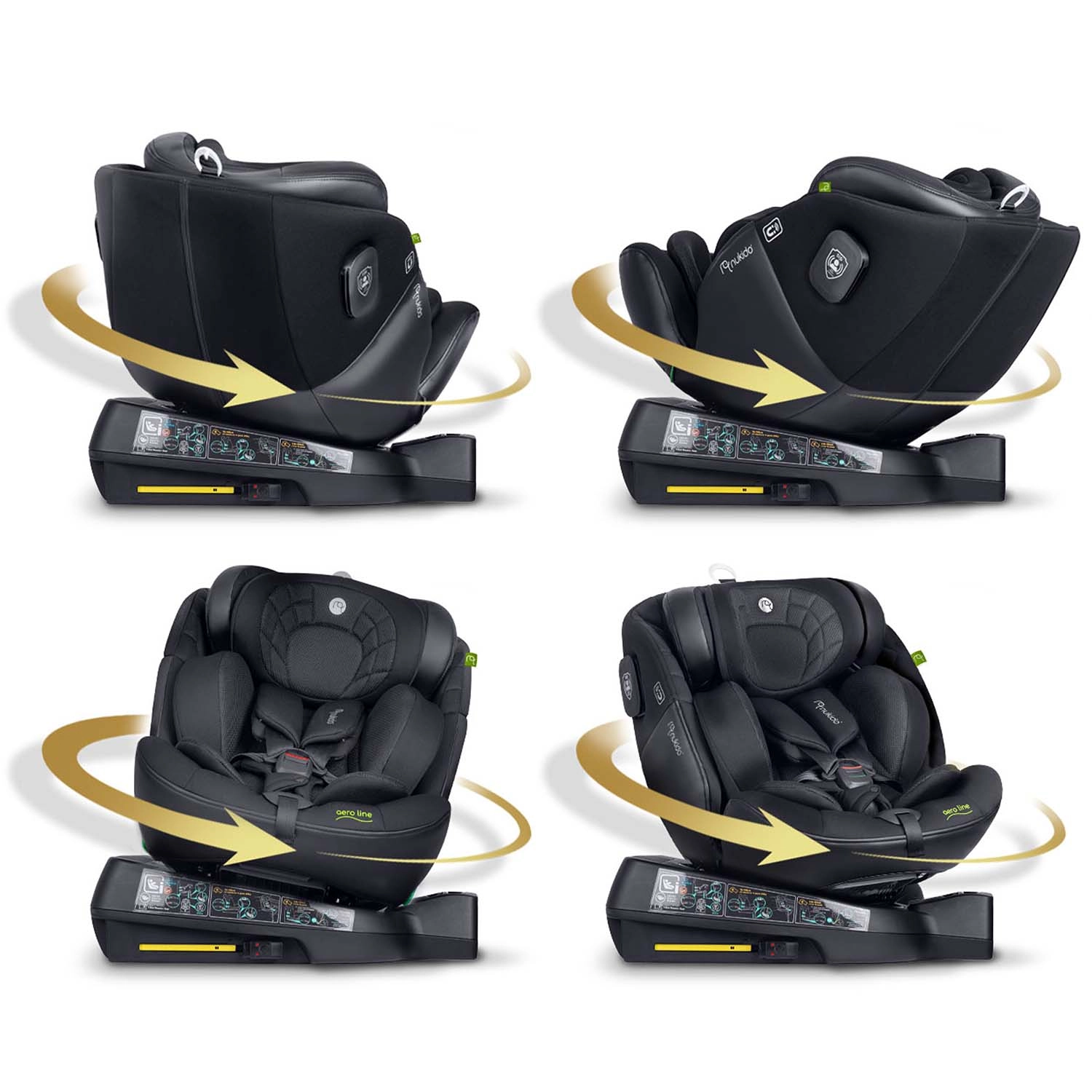 S sistemom 360° sedež preprosto obrnete proti vratom, pripnete otroka in z enim gibom fiksirate v želeni položaj. Zapor v 4 položajih poveča varnost in udobje uporabe.