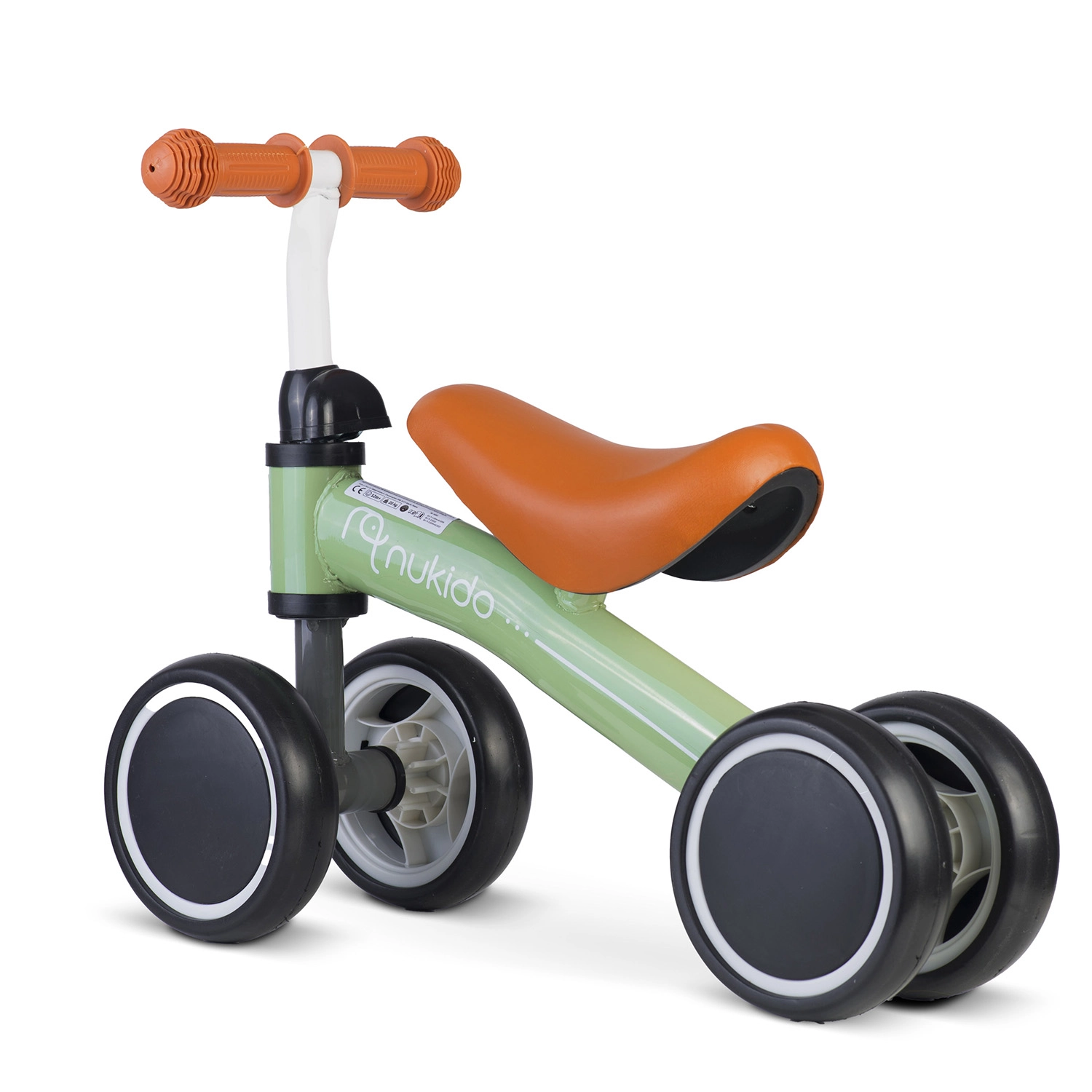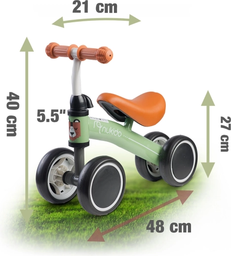Stabilen otroški poganjalec s štirimi kolesi za varne prve korake do vožnje s kolesom. Ponuja vzdržljiv kovinski okvir, mehko penasto sedlo, lahko zasnovo in gumijaste ročaje z omejevalniki za zanesljiv oprijem. Odličen za razvoj ravnotežja, koordinacije in koncentracije doma in na prostem.