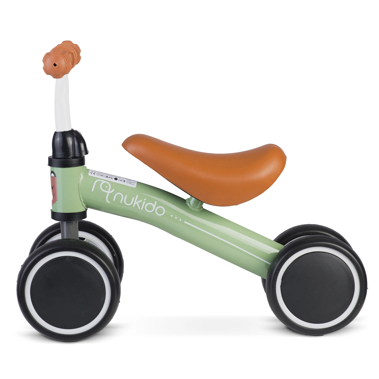 Idealna izbira za prve vožnje: štirikolesni poganjalec RICOKIDS nudi izjemno stabilnost in udobje, da se otroci lahko osredotočijo na učenje ravnotežja brez nepotrebnih padcev. Nizka višina sedla in kompaktne mere olajšajo vstopanje in varno vožnjo.