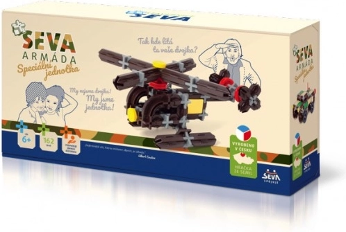 SEVA Vojska – specialna enota. Kreativni plastični konstruktor s 162 kosi za otroke od 6 let. Sestavite helikopter in druga vozila. Razvija motoriko in ustvarjalnost.