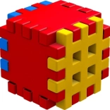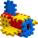 Nazobčani robovi in mrežaste površine omogočajo čvrsto povezovanje delov ter gradnjo preprostih 3D oblik, kock in stolpov.