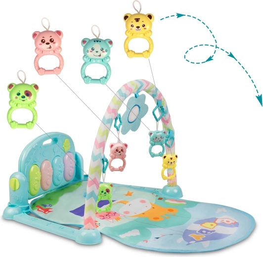 Odkrijte interaktivno igralno podlogo Ricokids 3v1 z odstranljivim klavirjem, mehko podlago in visečimi igračami za vsestranski razvoj dojenčka. 12 melodij, svetlobni gumbi in 5 večfunkcijskih igrač spodbujajo čute, koordinacijo in motoriko. Mehki, nedrseč in enostavno čistljiv material zagotavlja varnost in udobje, medtem ko izvirne barve spodbujajo vizualno zaznavanje. Podloga raste z otrokom in jo je mogoče spremeniti v glasbeno mizico.