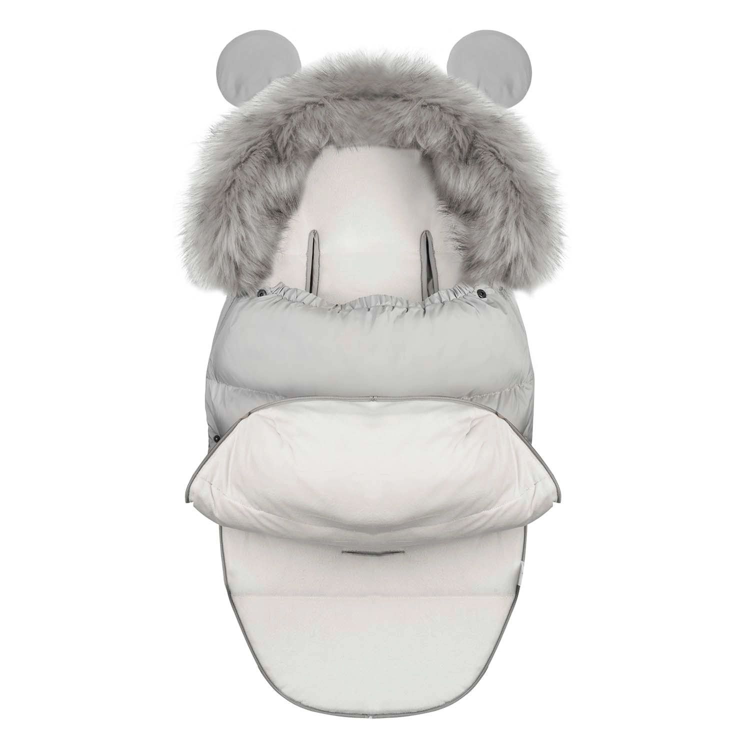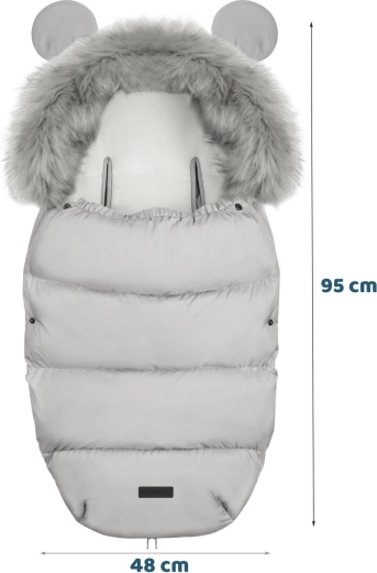 Praktična dvosmerna zadrga omogoča hitro zračenje od spodaj in enostavno odpiranje od zgoraj, zato lahko vrečo preprosto prilagodite trenutnim vremenskim razmeram. Odstranljivo krzno lahko snamete pred pranjem. Vrečo lahko poleg tega popolnoma razprete in uporabite kot vložek za voziček.