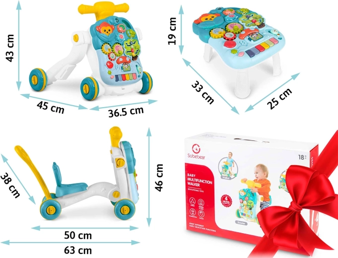 Z enostavno pregradnjo igračo prilagodite trenutnim potrebam otroka – od prvih korakov do samostojne vožnje in igre za mizo.
