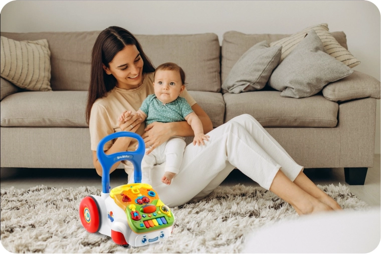 Hodulja RICOKIDS 2v1 otrokom pomaga varno trenirati prve korake zahvaljujoč premišljeni, stabilni konstrukciji. Velika kolesa z zavoro/upočasnjevalnikom in proti zdrsnim površjem zagotavljajo zanesljivost na različnih tleh in hkrati ne opraskajo podlage. Zaradi enostavne montaže in vzdržljive izdelave je idealna izbira za vsakodnevno uporabo.