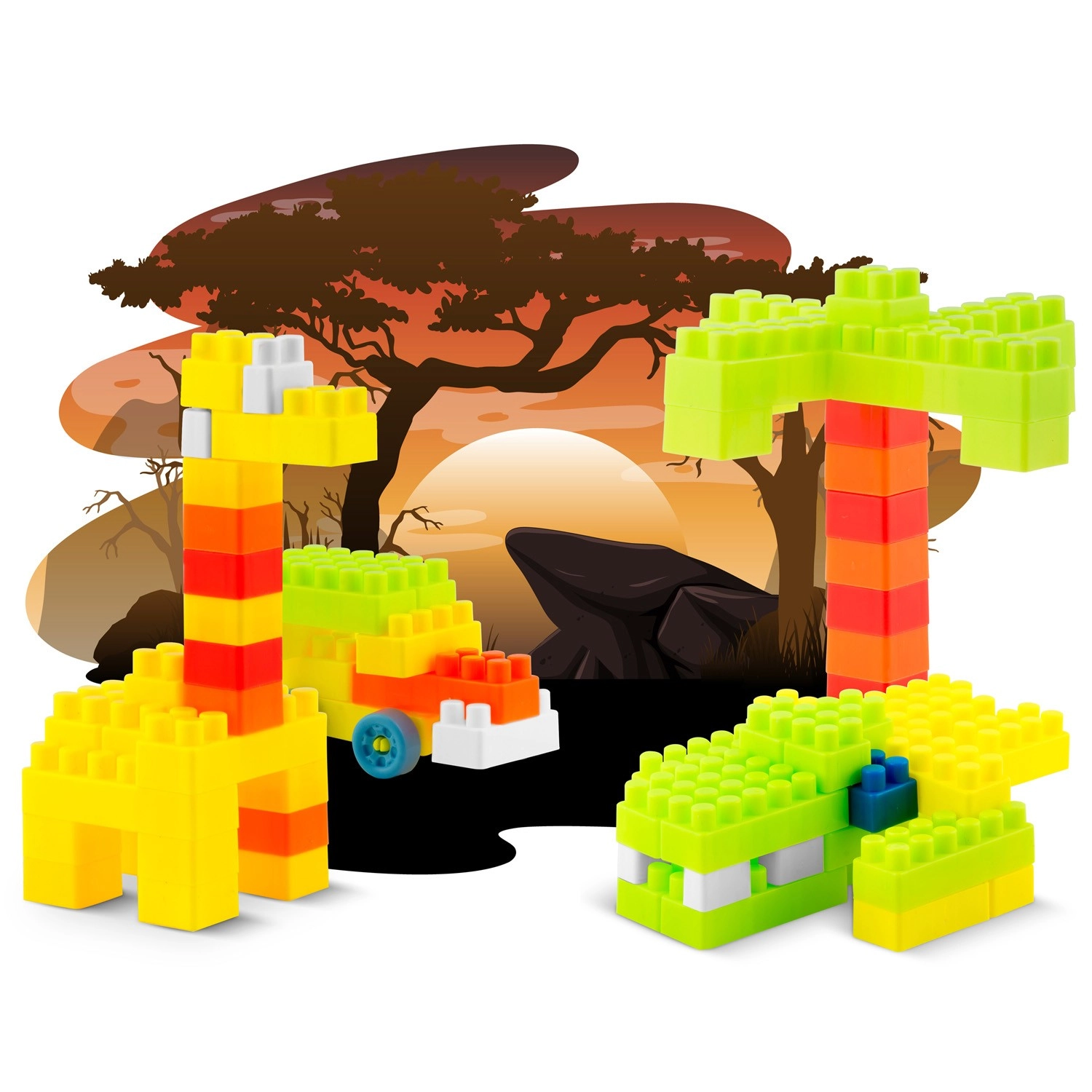 Velik komplet pisanih kock otrokom ponuja ure ustvarjalne zabave in vedno nove ideje za zgradbe ter figurice.