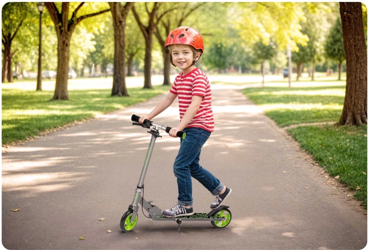 Iščete skiro, ki bo rasel z otrokom in hkrati ponudil zanesljivost pri vožnji po pločnikih in kolesarskih stezah? Model RICO KIDS Kodi združuje nizko težo, zložljivo konstrukcijo in udobna kolesa iz PU gume s premerom 145 mm, ki odlično blažijo neravnine. Zahvaljujoč ročni in nožni zavori ima mali voznik vožnjo in zaviranje popolnoma pod nadzorom.