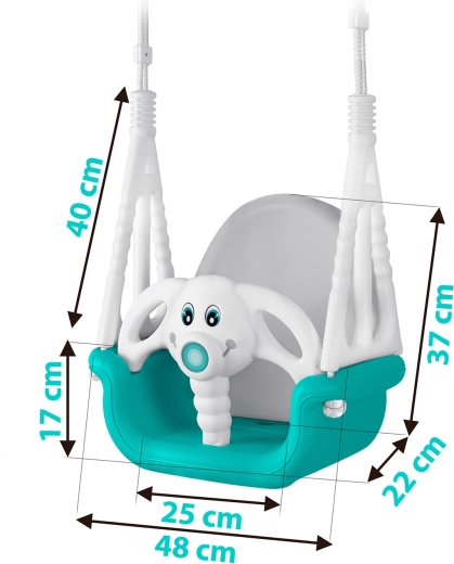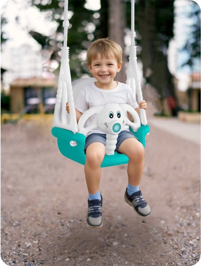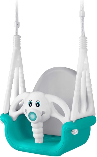 Univerzalna otroška gugalnica 3v1 z zabavnim motivom slončka raste z vašim otrokom od 6 mesecev do 10 let. Ponuja visok naslon, sprednjo varnostno ograjo in močne nastavljive vrvi za varno guganje doma in na prostem. Vzdržljiva vodoodporna plastična izvedba, protizdrsni sedež ter certifikata CE, GS za mirno vest staršev.
