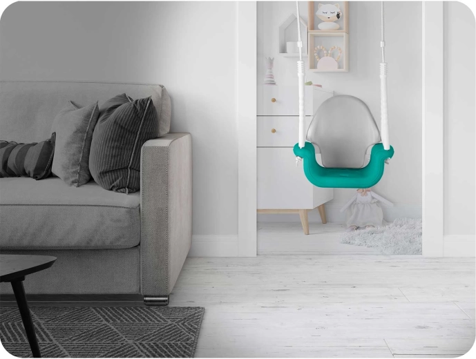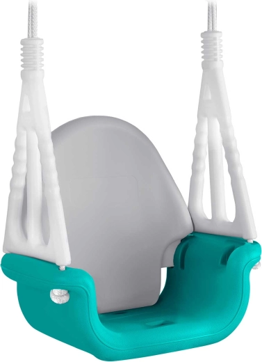 Tri enostavno zamenljive načine: z naslonom in ograjo (6–36 m), brez sprednje ograje (3–5 let) ter klasična gugalnica brez naslona (5–10 let). Ena gugalnica za celo otroštvo.