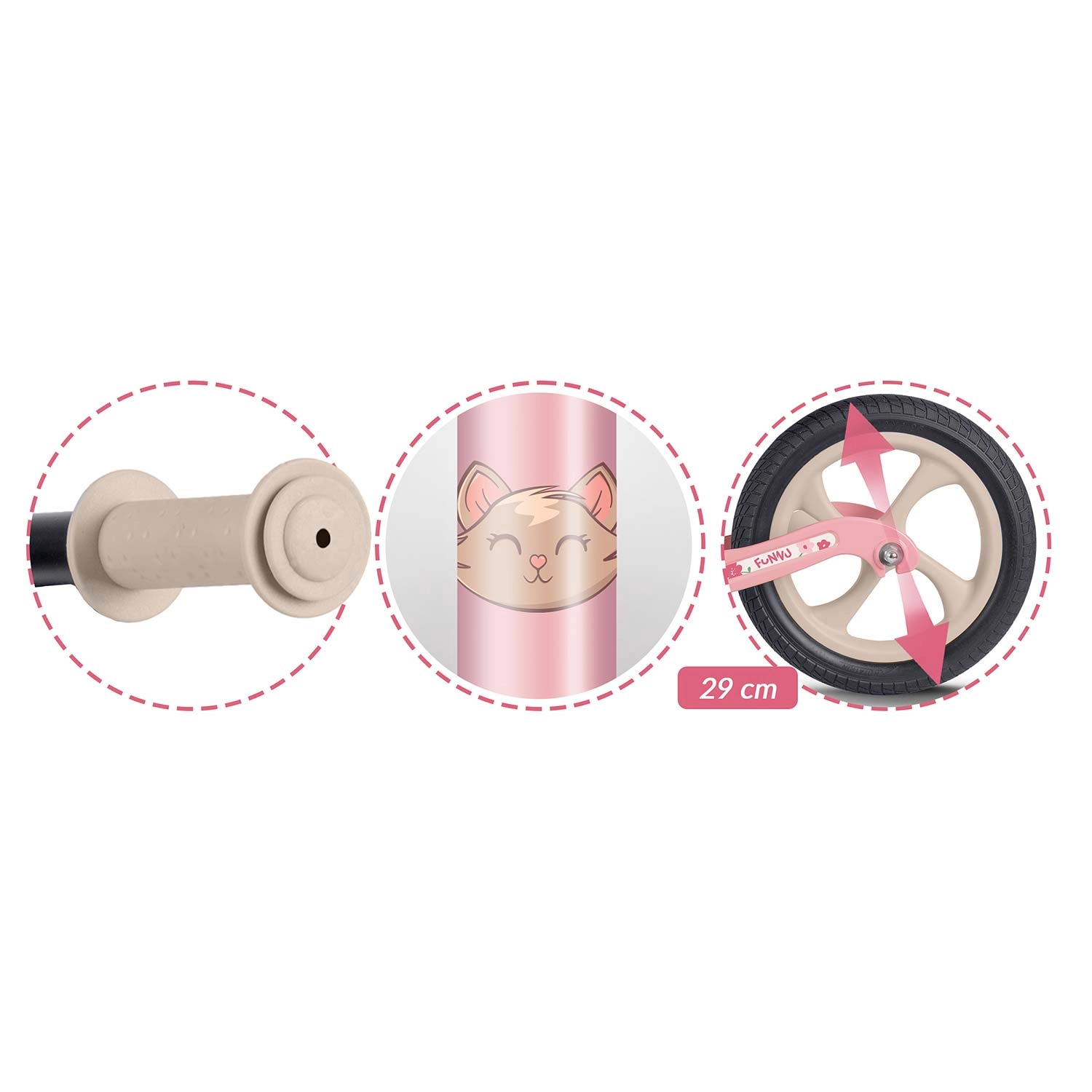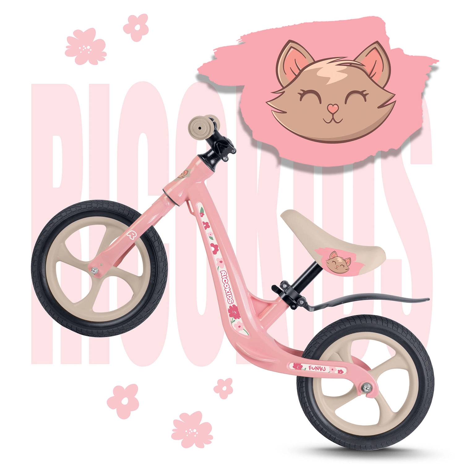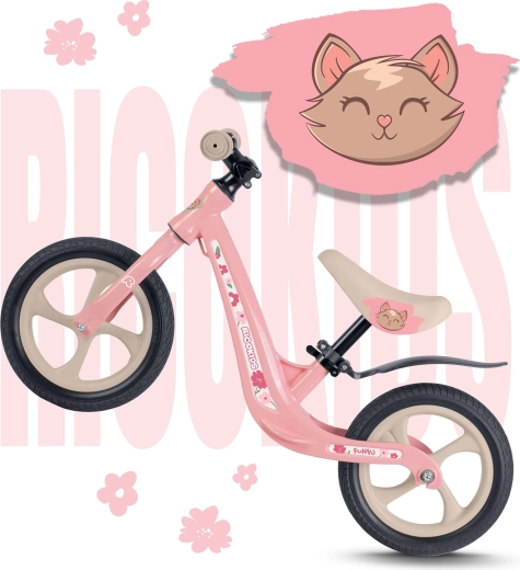 RICOKIDS FUNNU je poganjalno kolo zasnovano za male raziskovalce, ki želijo voziti brez omejitev. Izjemno lahek okvir iz magnezijeve zlitine olajša upravljanje otrokom in staršem, medtem ko brezvzdrževalna kolesa EVA zagotavljajo mirno vožnjo brez predrtij na travi, asfaltu in prodniku. Zahvaljujoč neskončno nastavljivi višini sedeža poganjalec raste skupaj z vašim otrokom.