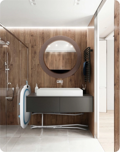 Zložljivo kovinsko stojalo dvigne banjico na idealno višino, poveča stabilnost in razbremeni hrbet. Odlična rešitev za majhno kopalnico in na pot.