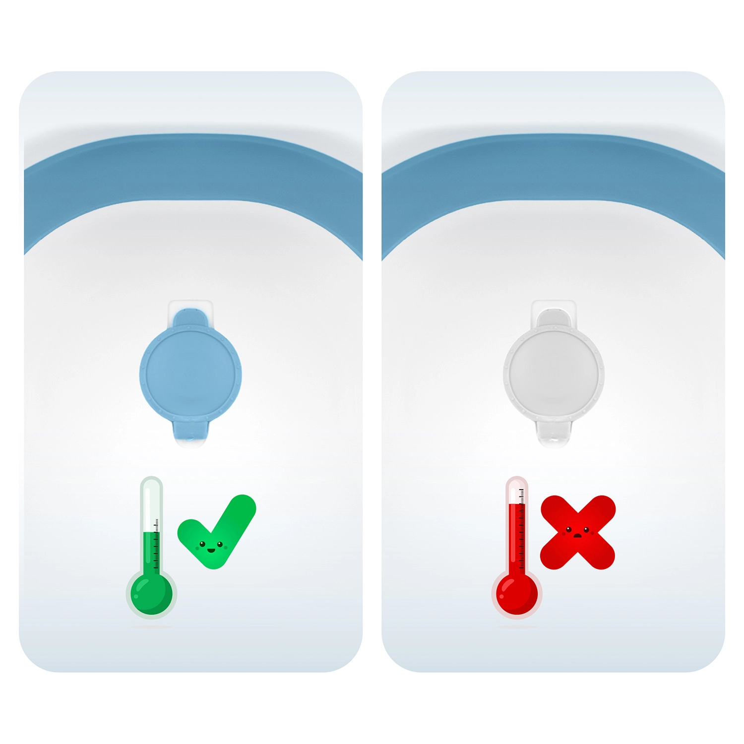 Temperaturo vode vidite na prvi pogled. Vgrajeni termometer z natančno sondo meri sproti, medtem ko čep spremeni barvo nad 38 °C – za mirno in varno kopanje.