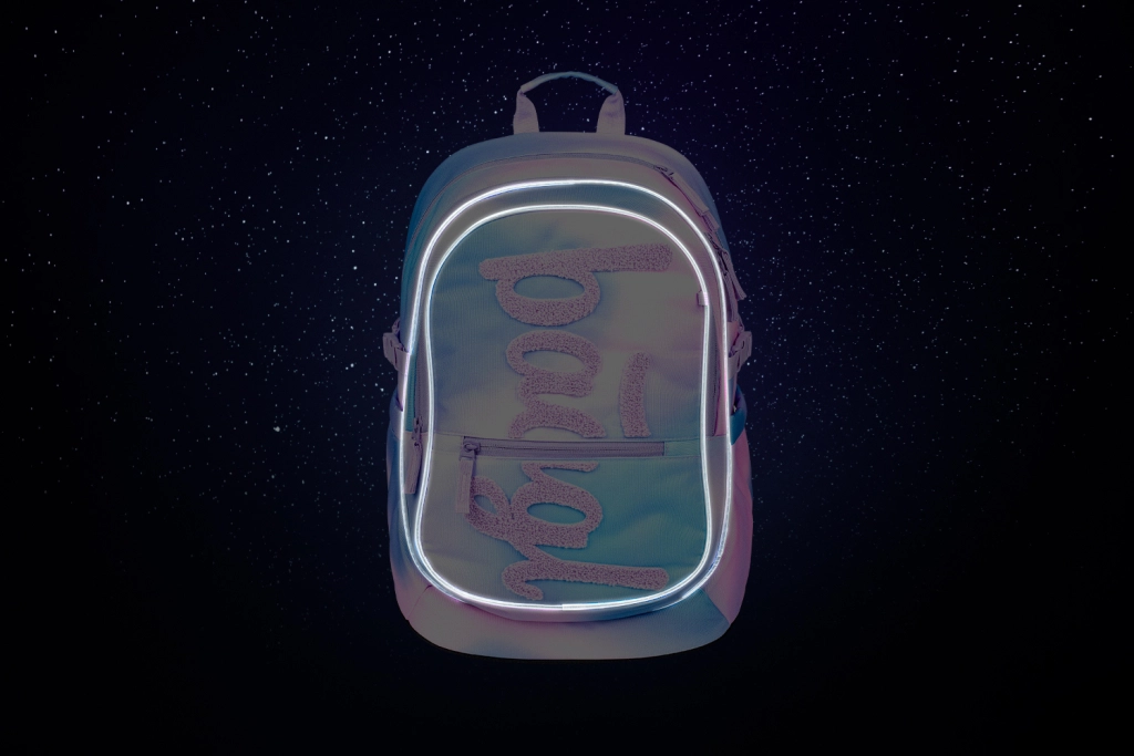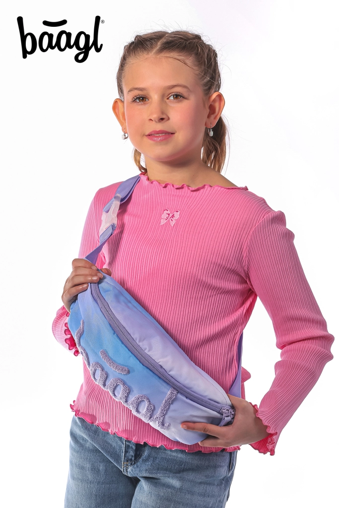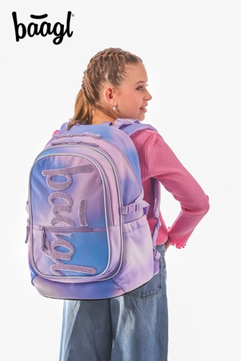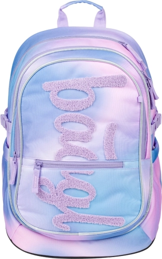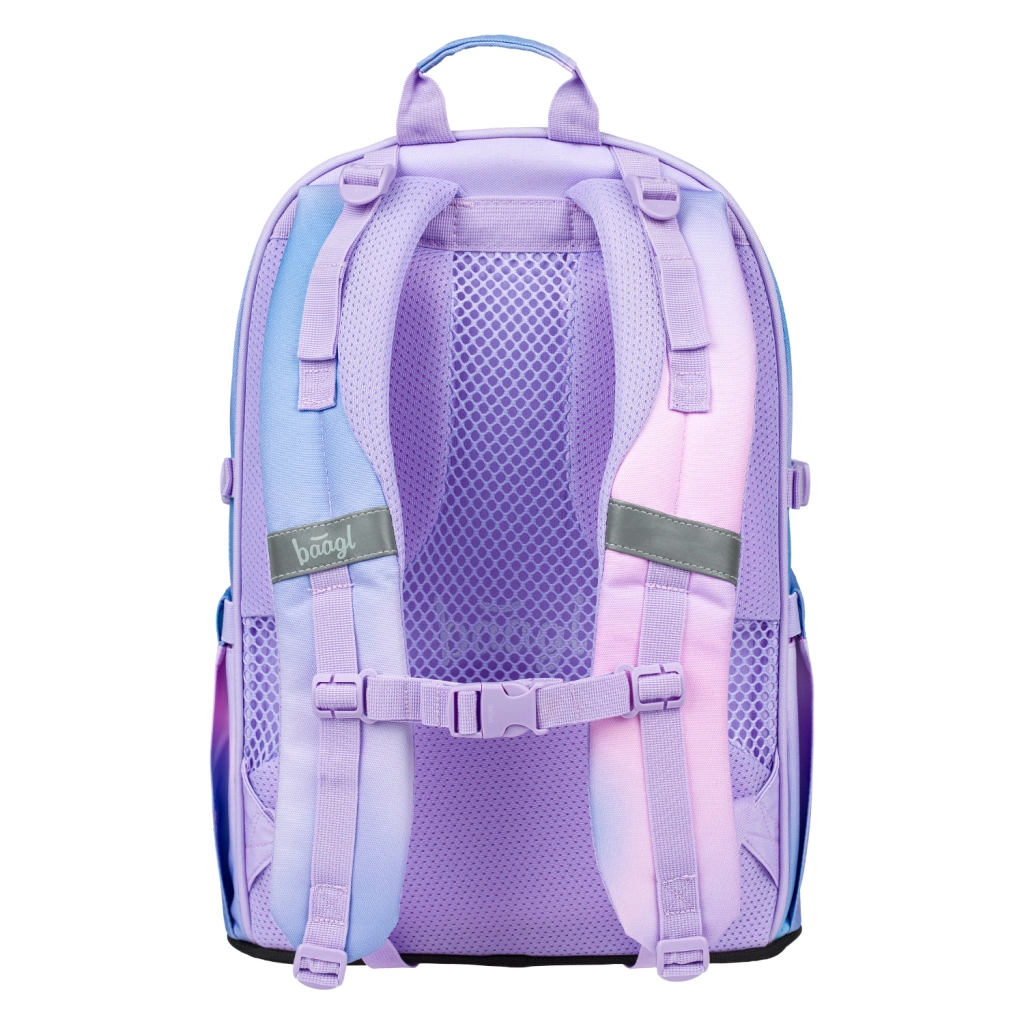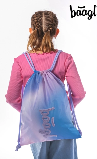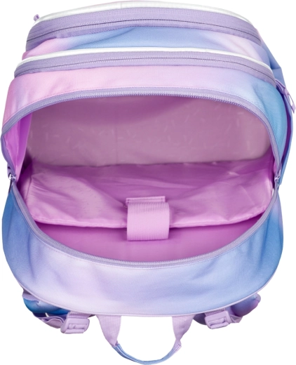 K nahrbtniku se ujemajo peresnica, vrečka za telovadbo, ledvična torbica in ovitek za prenosnik v pastelnem gradientu. Praktična oprema za šolo in prosti čas v enem paketu.