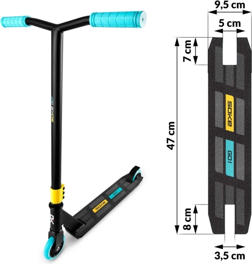 Oprijemalni trak za skiro Soke GO! poskrbi za stabilen položaj stopal in varnejše pristanke pri trikih. Zahvaljujoč kakovostni brusni površini stopalo ostane trdno na deski tudi v mokrem in pri višjih hitrostih.