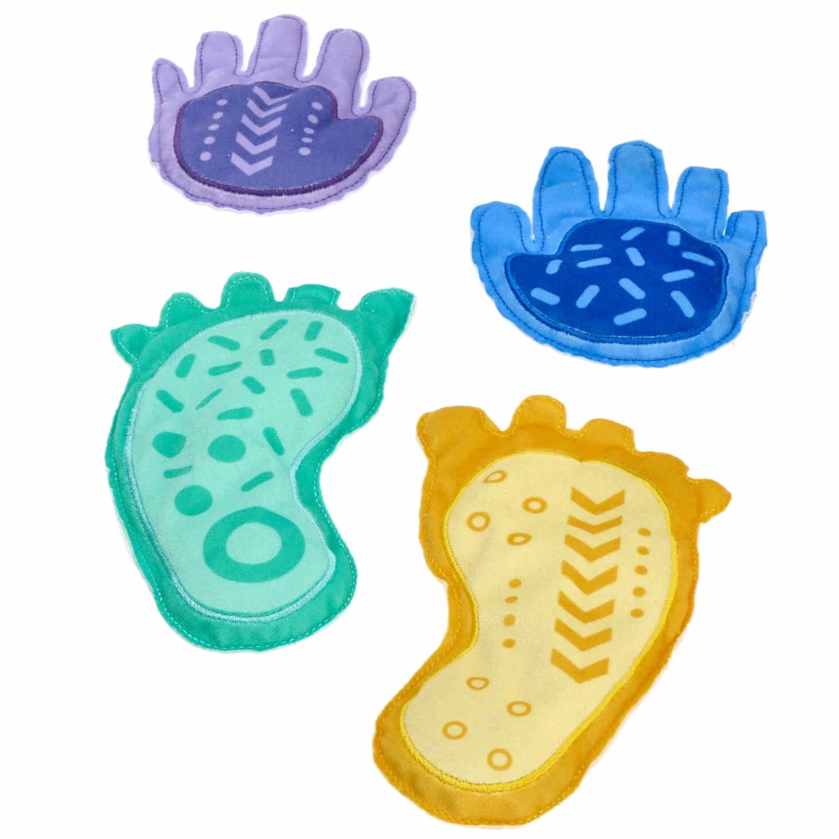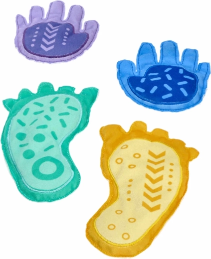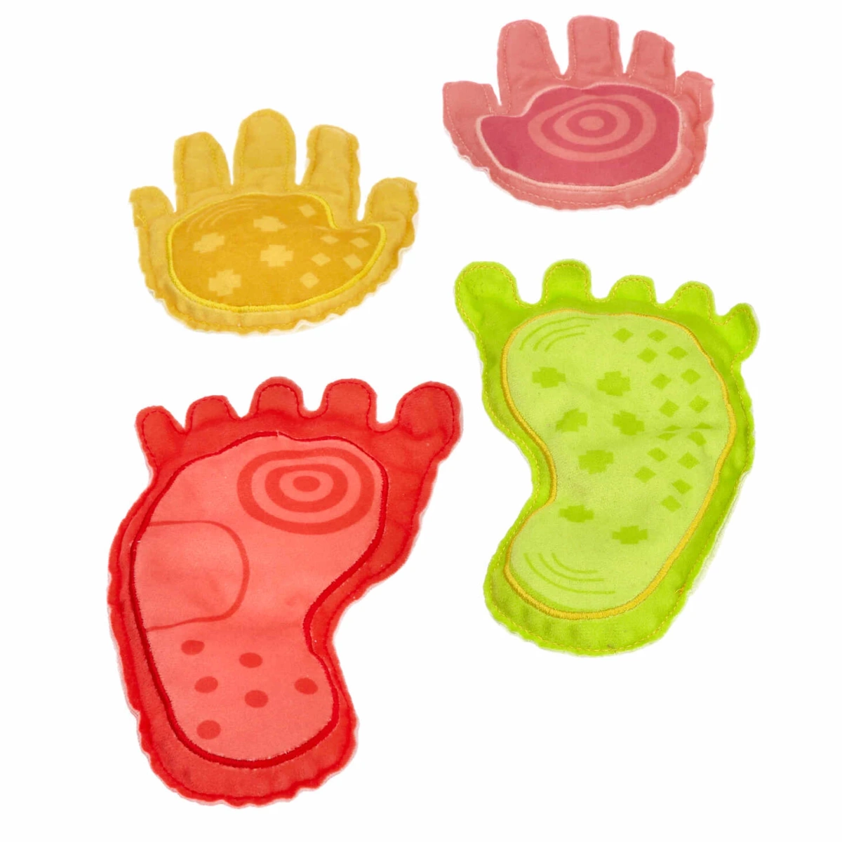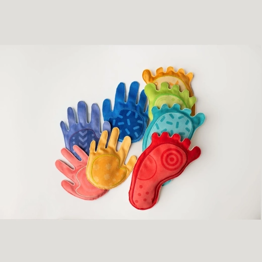 Barvite roke in stopala usmerjajo korake, učijo natančnega stopanja, krepijo stabilnost telesa ter koordinacijo oko-roka med igrami in vajami.
