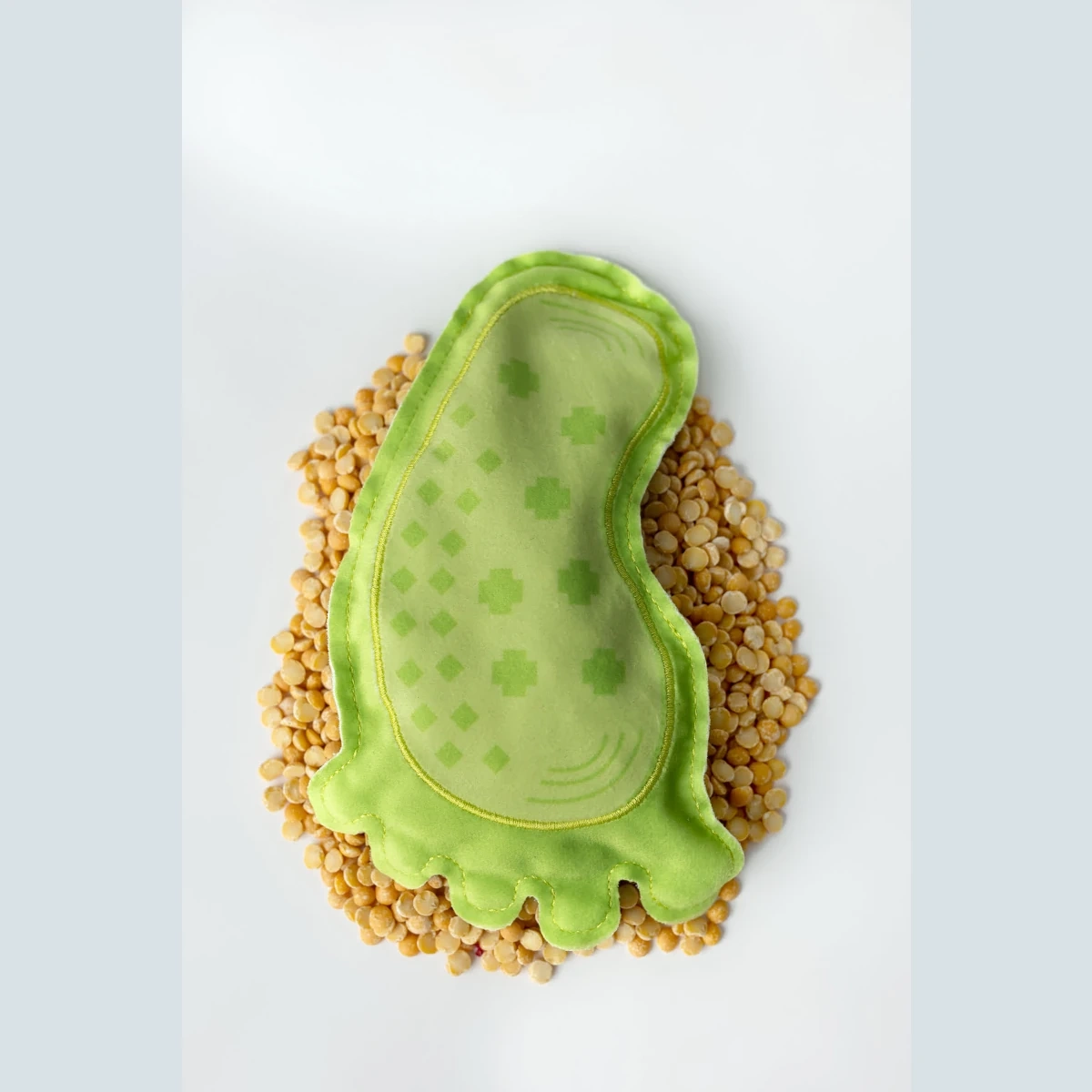 Vsaka blazinica ponuja drugačno teksturo: ajdove luščine, laneno seme, češnjeve koščice, riž, soja, ajda, proso in grah. Otroci prepoznavajo različne površine in krepijo tipno zaznavanje.
