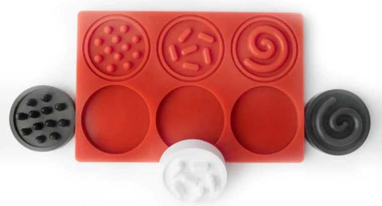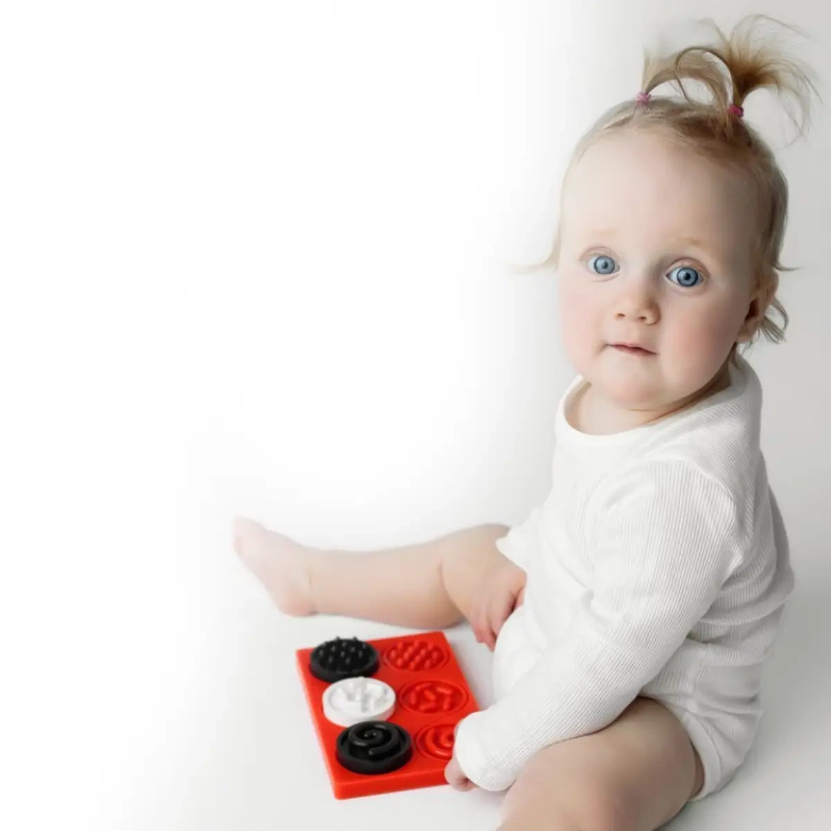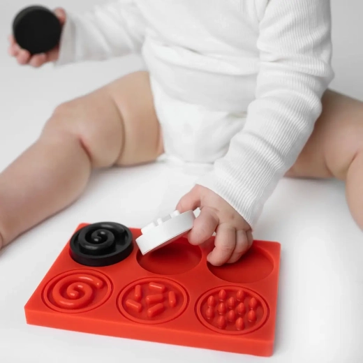 Senzorični obročki sestavljanke otrokom od najzgodnejših let omogočajo varno odkrivanje sveta z dotikom. Trije obročki z različnimi površinami in kontrastnimi pastelnimi barvami spodbujajo prijemanje, raziskovanje in vlaganje v ustrezne odprtine. Igra naravno razvija koordinacijo oko–roka, fino motoriko ter zaznavanje barv in oblik.
