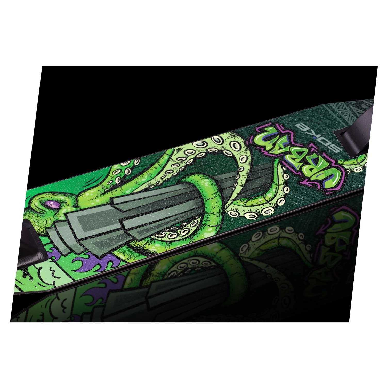 Grip tape SOKE Evo – Octopus je zasnovan za voznike, ki želijo maksimalno zanesljivost pri vožnji in izvajanju trikov. Zahvaljujoč kakovostni abrazivni površini ponuja zanesljiv oprijem in stabilnost, medtem ko univerzalne mere olajšajo natančno lepljenje na večino freestyle in mestnih skirojev. Dizajn Octopus poudari vaš slog in doda skiroju edinstven videz.