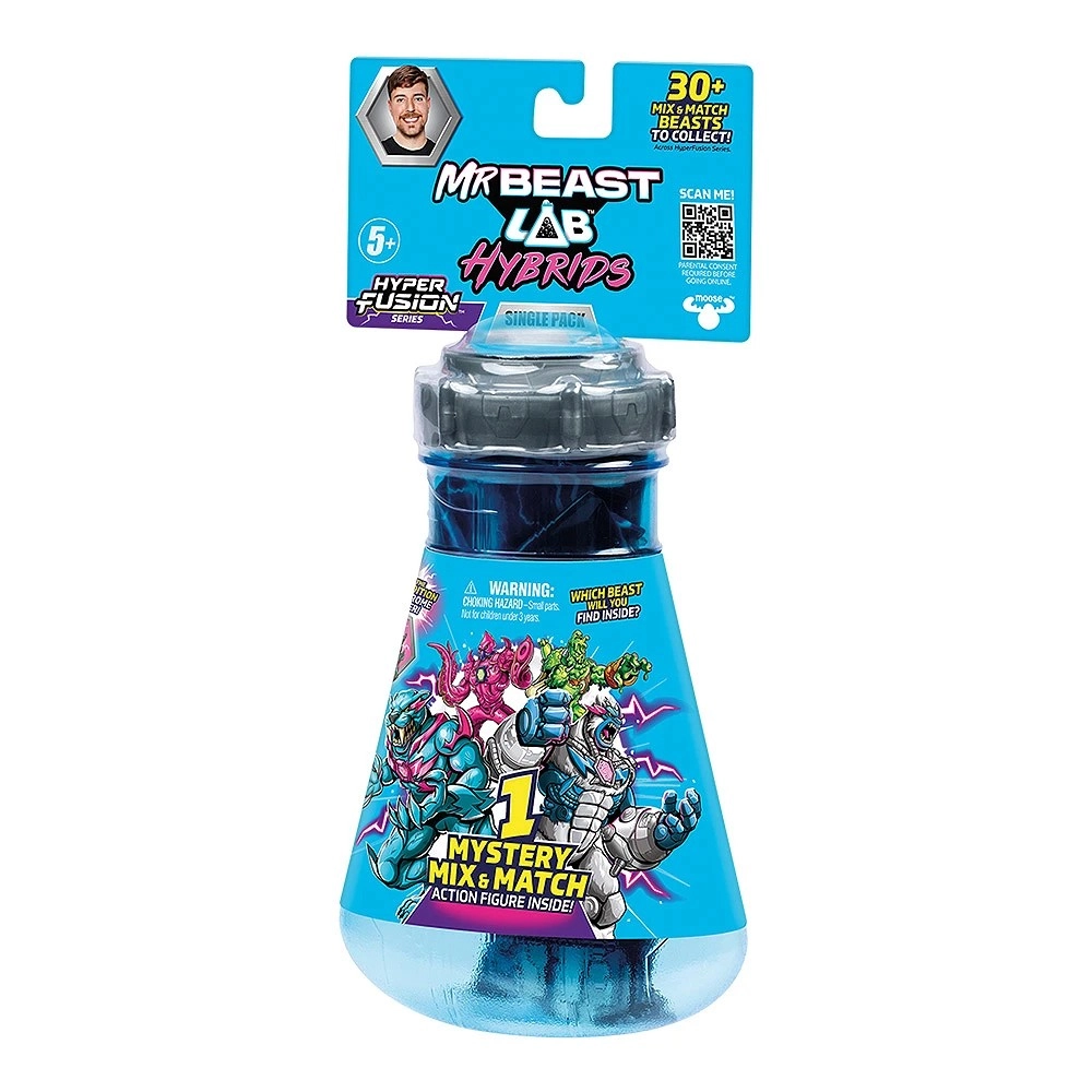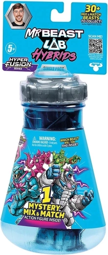 Vstopi v noro ustvarjalen svet MRBEAST Lab Hybrids Hyper Fusion. Vsak Mystery Pack skriva dele ene od 10 zveri, ki jih je mogoče prosto menjati med seboj. Zahvaljujoč sistemu mix & match si lik zlahka prilagodiš po svoje, ob vsakem odprtju pa te čaka novo presenečenje – morda tudi legendarna omejena izdaja 1/1000.