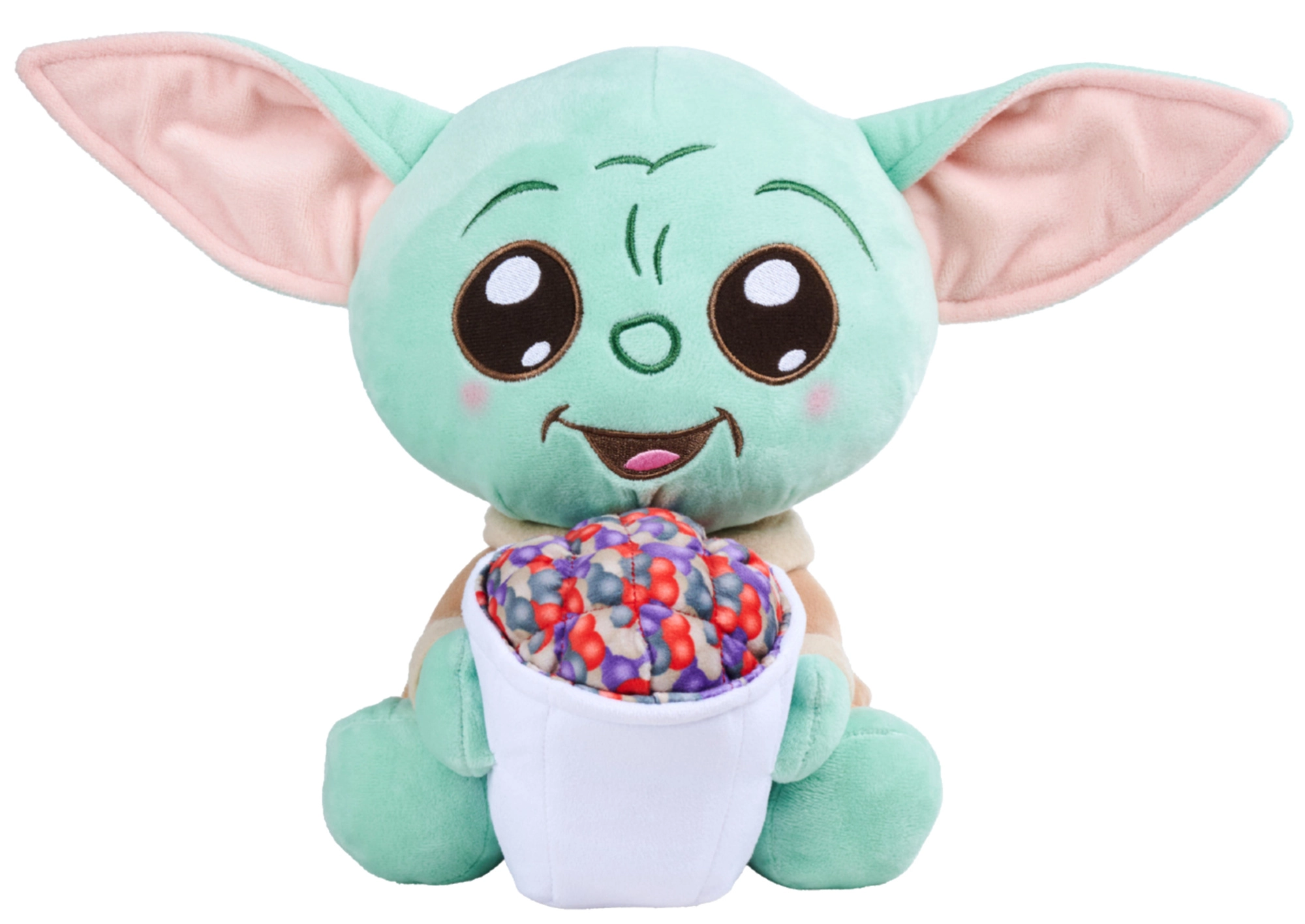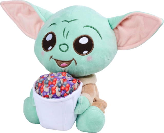 Prisrčna plišasta figurica Grogu (Baby Yoda) iz sveta STAR WARS v izdaji The Mandalorian v naročju drži vedro pokovke – podrobnost, ki bo razveselila oboževalce serije. Izdelana je iz mehkega in žametnega pliša, odlična za crkljanje in igro. Zahvaljujoč izvezenim potezam obraza in izrazitim ušesom deluje zelo pristno, njena kompaktna višina približno 25 cm pa je idealna za na pot ali za razstavljanje v sobi.
