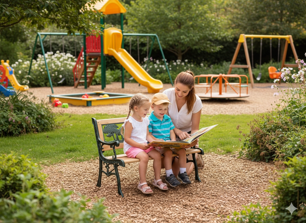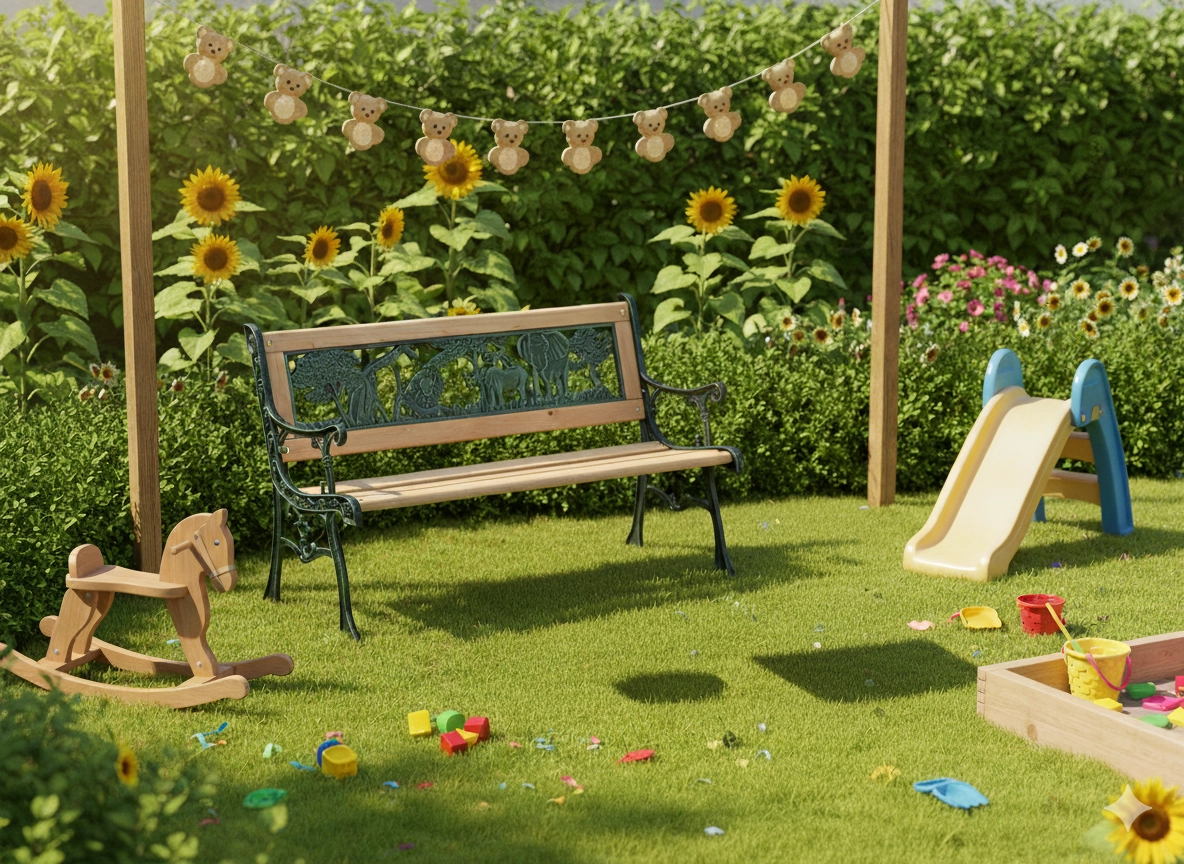 Odlično se poda k peskovniku, toboganu ali gugalnicam in ustvari prijeten prostor za počitek med igro.