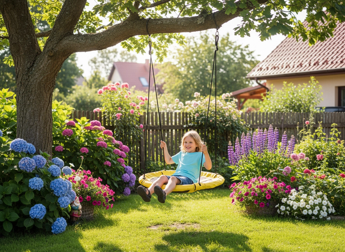 Robusten okvir iz pocinkanega jekla v kombinaciji z močnimi PE vrvmi in prevleko iz Oxford 300×600D zagotavlja dolgo življenjsko dobo tudi pri zunanji uporabi. Nastavljiva višina 1,4–1,9 m olajša namestitev na drevo, okvir ali pergolo.