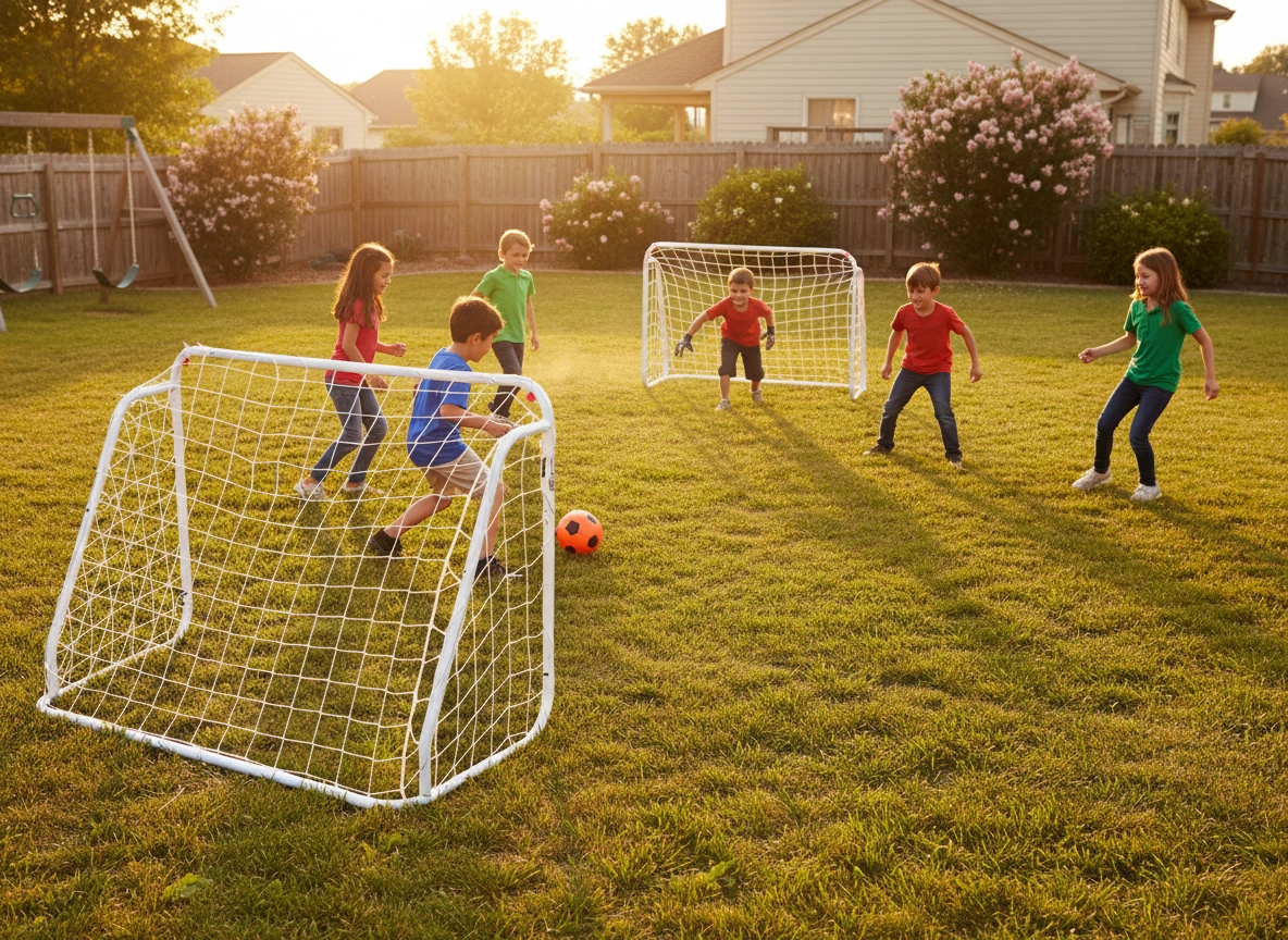 Komplet dveh prenosnih nogometnih golov ponuja odlično zabavo za otroke in odrasle. Lahka, a stabilna konstrukcija s premerom cevi 28 mm ter vzdržljiva mreža iz trojnosne vrvi zlahka preneseta zunanje razmere in pogosto uporabo. Mere 124 × 96 × 61 cm so idealne za male tekme, tehnične vaje in hitre igre na vrtu.