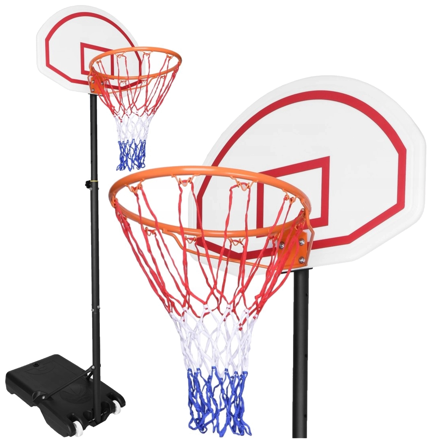 Višino koša zlahka prilagodite od 165 do 205 cm, zato je primeren za različne starostne skupine in ravni znanja. Podstavek z možnostjo polnjenja z vodo ali peskom nudi stabilnost, medtem ko transportna kolesca omogočajo hitro premikanje koša tja, kjer ravno igrate.