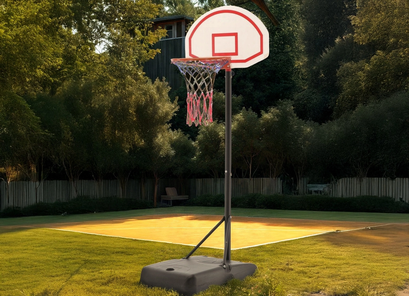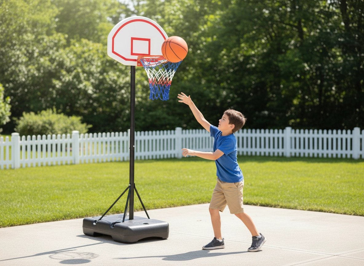 Uživajte v košarki kadar koli in kjer koli s tem prenosnim košem. Ponuja nastavljivo višino 165–205 cm, stabilno napolnljivo osnovo in kolesca za enostavno premikanje – idealno za otroke, najstnike in odrasle na vrtu, dovozu ali šolskem igrišču.