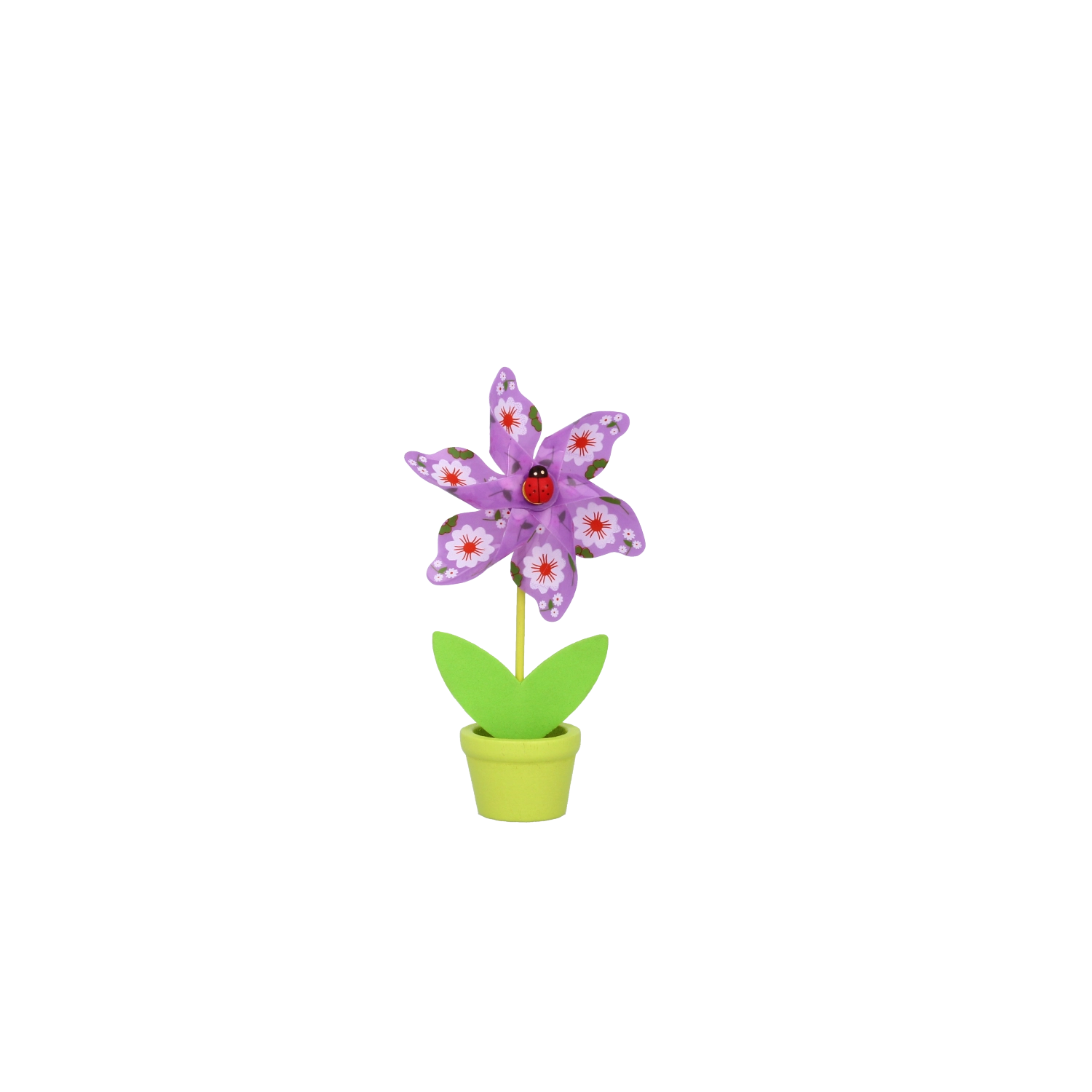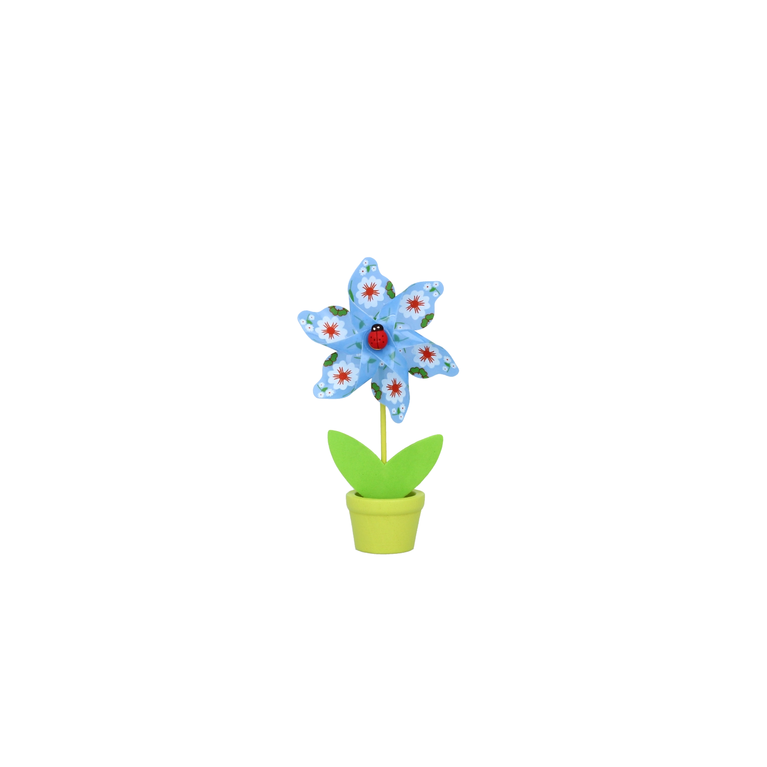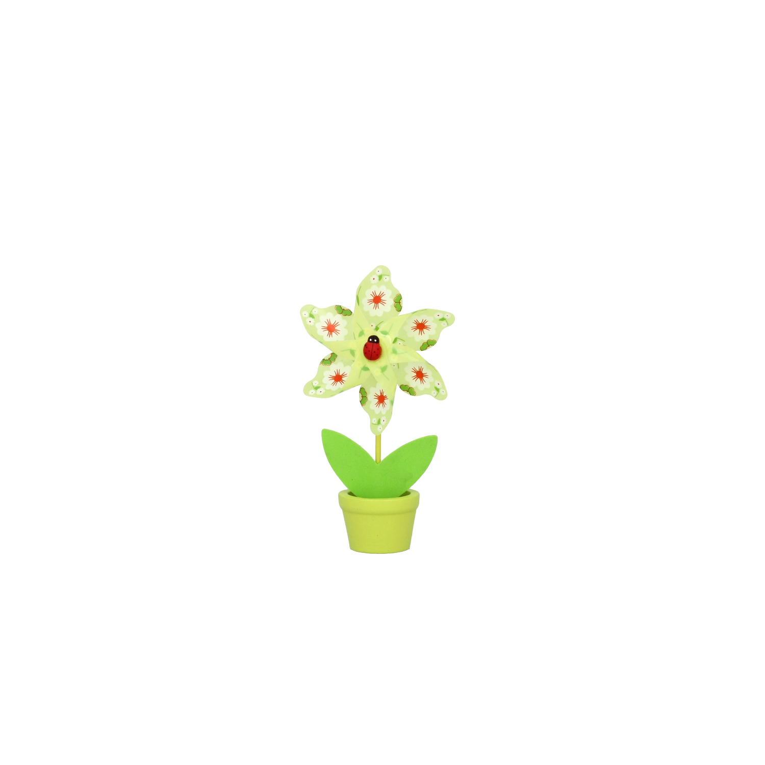 Popestrite notranjost ali otroški kotiček z barvito vetrnico s pikapolonico v mini cvetličnem lončku. Lahka in stabilna, zavrti se že ob nežnem sapici ter vnese v prostor igrivost in barve. Zaradi kompaktnih mer je odlična za delovno mizo, polico ali okensko polico.