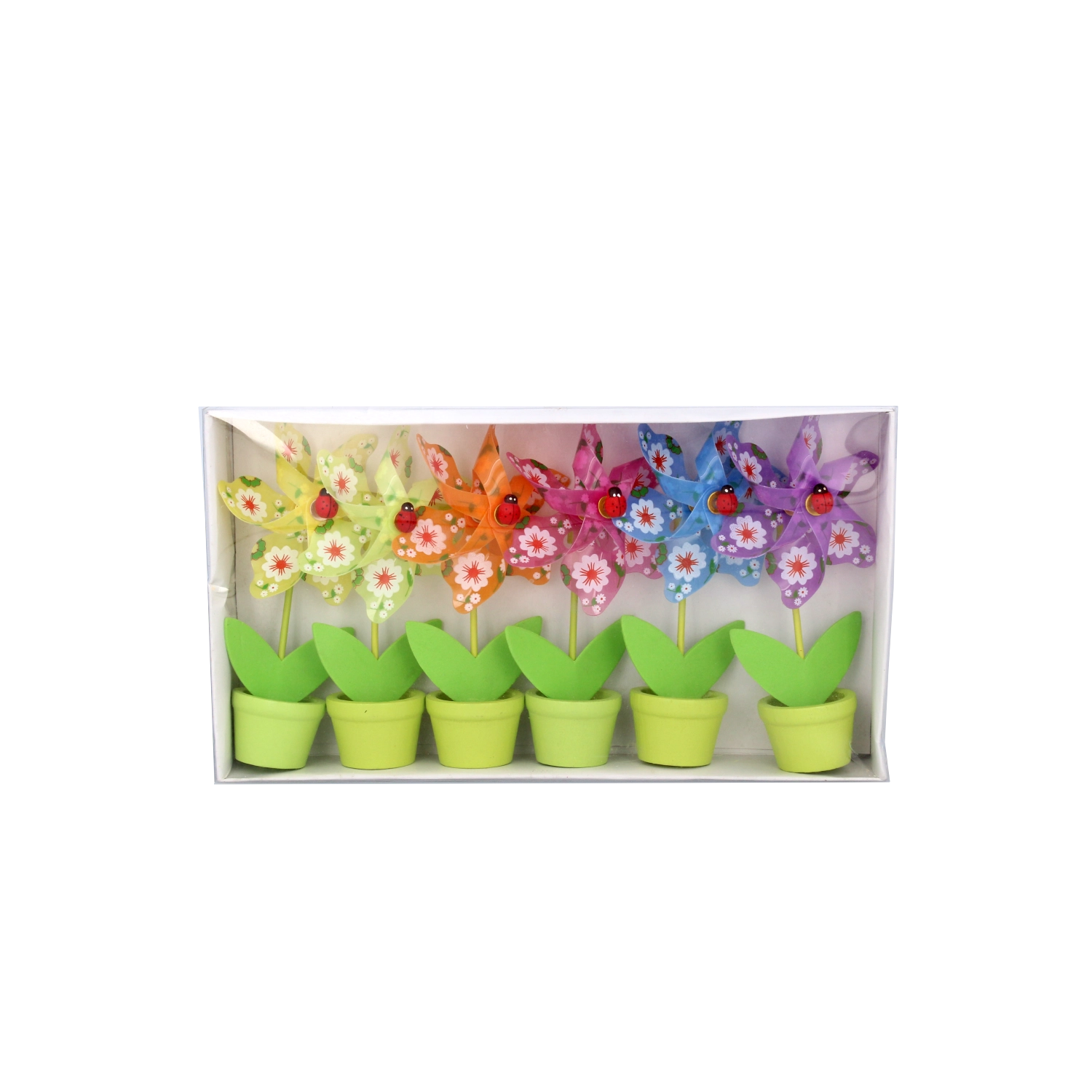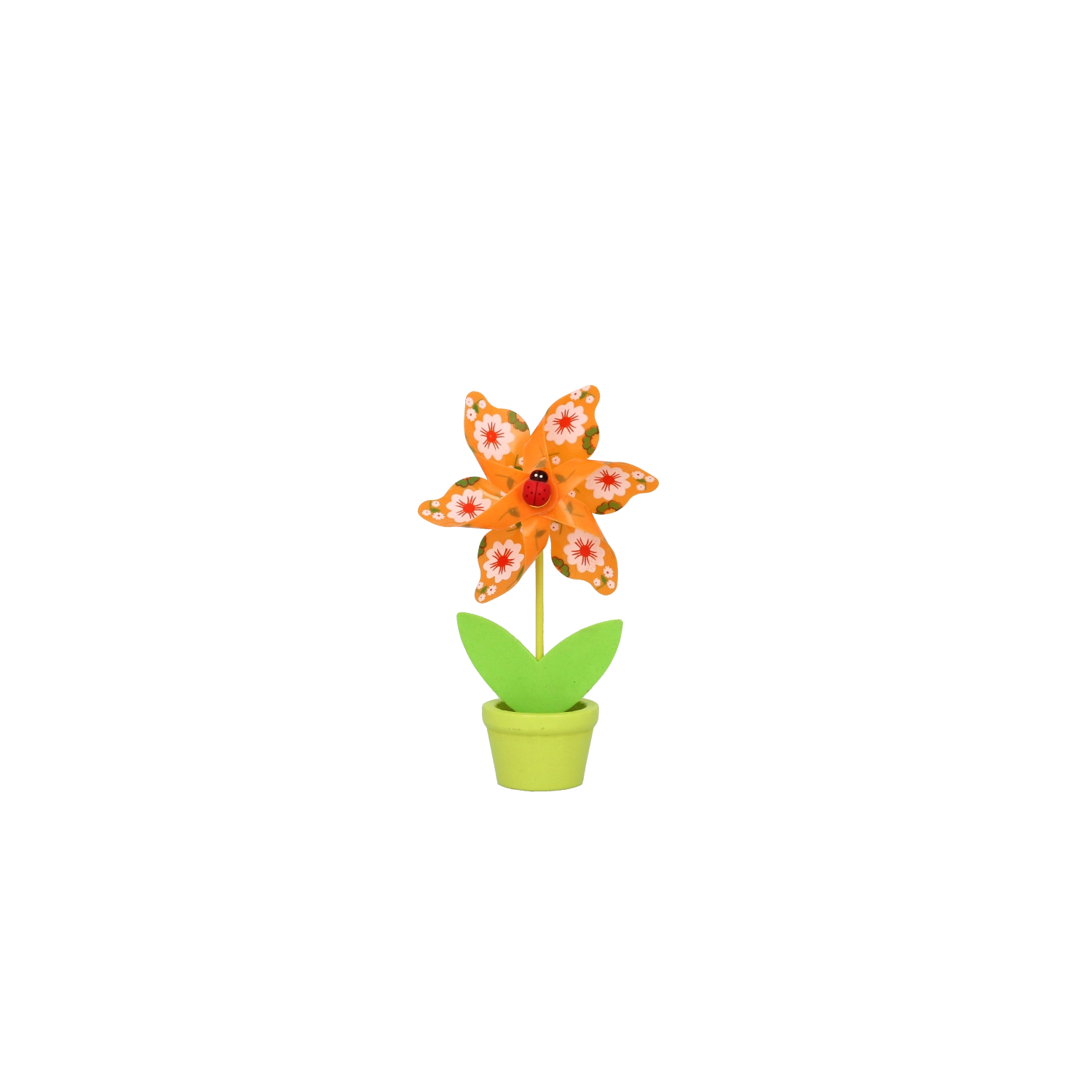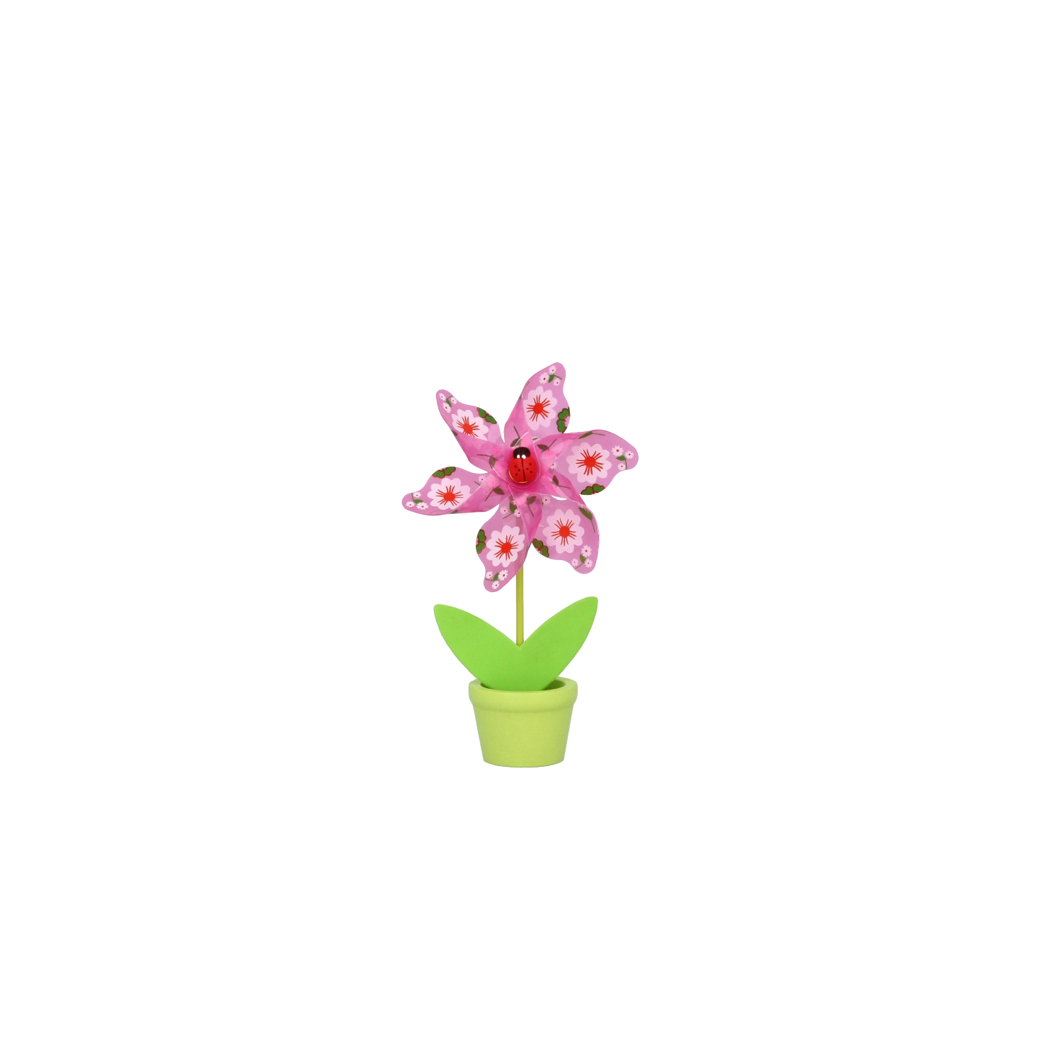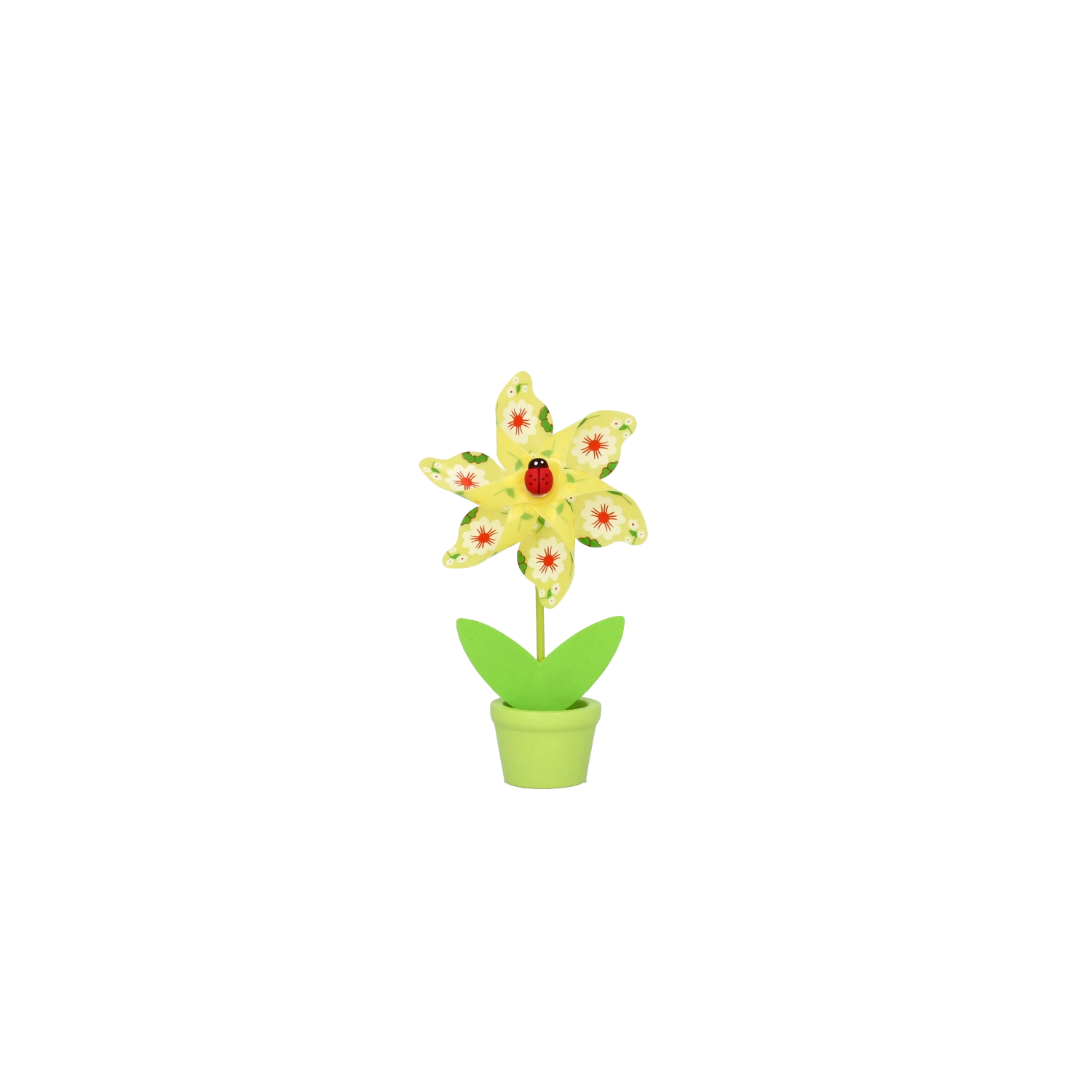 Popestrite notranjost ali otroški kotiček z barvito vetrnico s pikapolonico v mini cvetličnem lončku. Lahka in stabilna, zavrti se že ob nežnem sapici ter vnese v prostor igrivost in barve. Zaradi kompaktnih mer je odlična za delovno mizo, polico ali okensko polico.