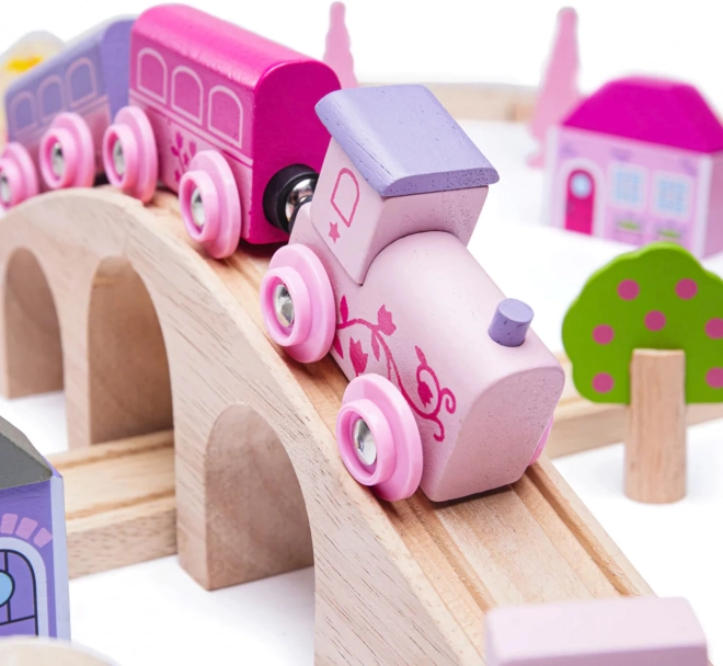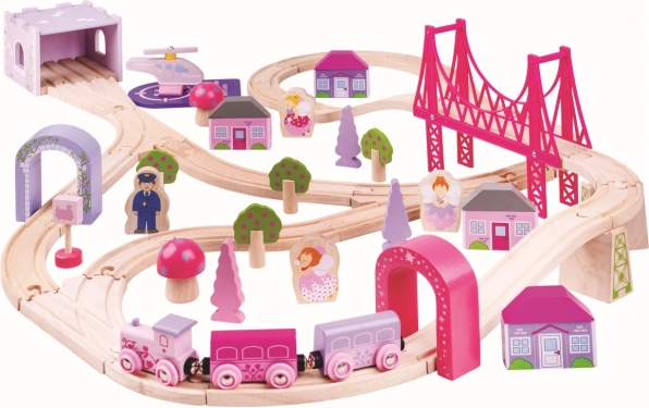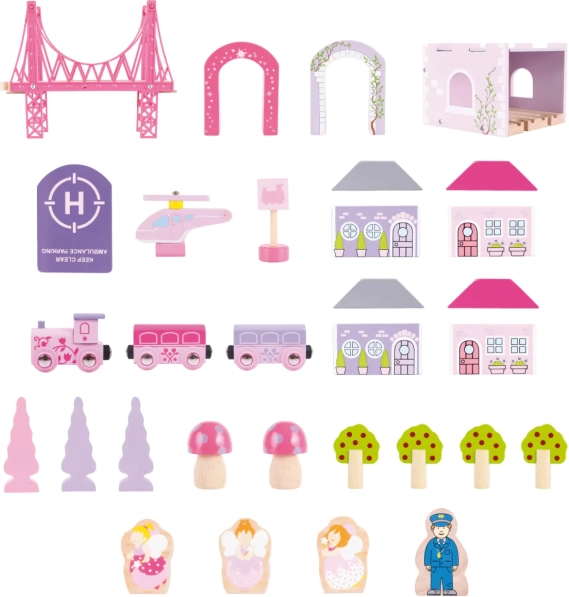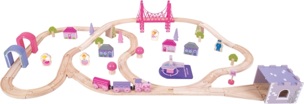 Ta železniška proga je idealna za otroke, ki imajo radi pravljične in princeskine teme. Sestavljenka vsebuje 75 delov, ki vključujejo mostove, tunele, hišice in drevesa, kar omogoča otrokom, da ustvarijo svoj čarobni svet.