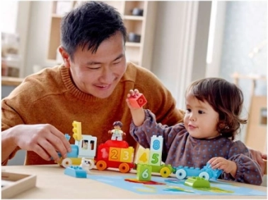 Barvit set LEGO DUPLO Vlak s številkami prinaša otrokom od 18 mesecev igriv način učenja štetja. Vsebuje potiskani vlak, 10 kock s številkami ter figurice deklice, dečka in kužka za zabavno učenje števil, razvoj fine motorike in kreativno igro.