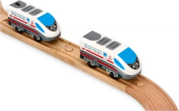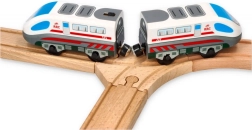 To lokomotivo je mogoče preprosto povezati z lesenimi vlakovnimi garniturami drugih proizvajalcev, ki jih morda že imate doma.