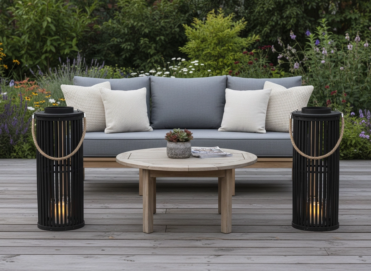 Velik črn lampijon je izrazit dodatek za teraso, vrt in dnevni prostor. Zahvaljujoč stekleni vložki je sveča zaščitena, svetloba pa se prijetno razprši med lamelami. Dizajn izstopa v modernih, rustikalnih in boho interierjih.