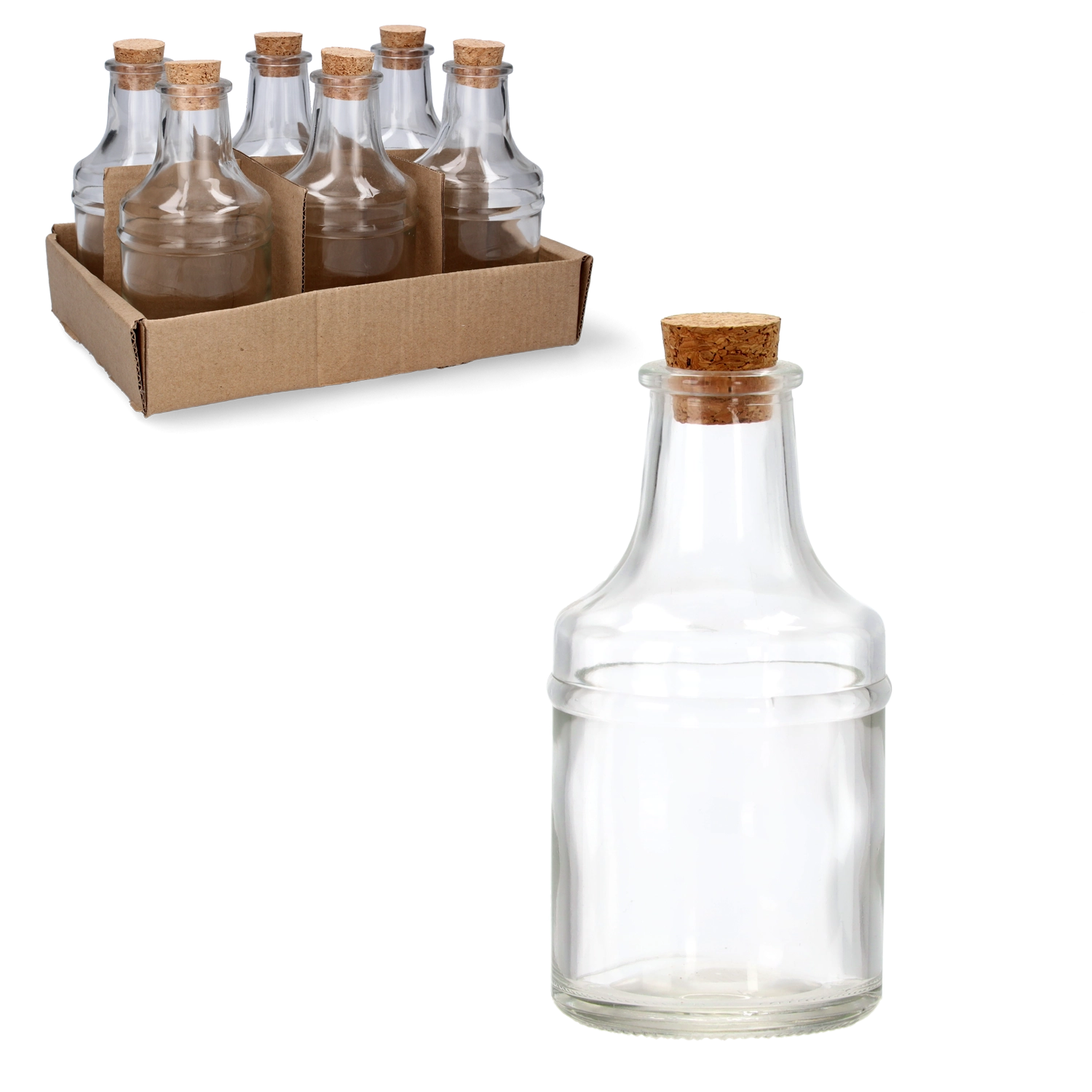 Ta kompaktna steklenička s prostornino 200 ml je izdelana iz kakovostnega, debeleje stenjenega stekla, ki zagotavlja visoko odpornost pri vsakodnevni uporabi. Naravni plutovinast zamašek zanesljivo tesni in hkrati deluje elegantno – popolna izbira za domačo kuhinjo, darilna pakiranja in stilsko postrežbo.