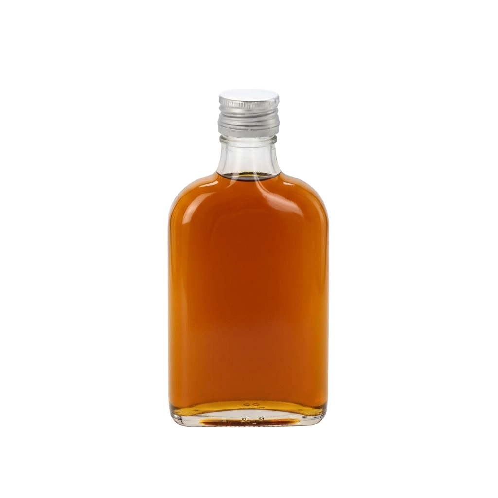 Kompaktna steklena steklenička s prostornino 200 ml je idealna za domače likerje, vina in destilate. Zaradi ploske oblike jo zlahka pospravite v žep ali torbo, prozorno steklo pa napitku doda eleganten videz. Tesno kovinsko navojno zapiralo ščiti vsebino, na voljo je v različnih barvah, kakovostna izdelava pa zagotavlja vzdržljivost in večkratno uporabo.