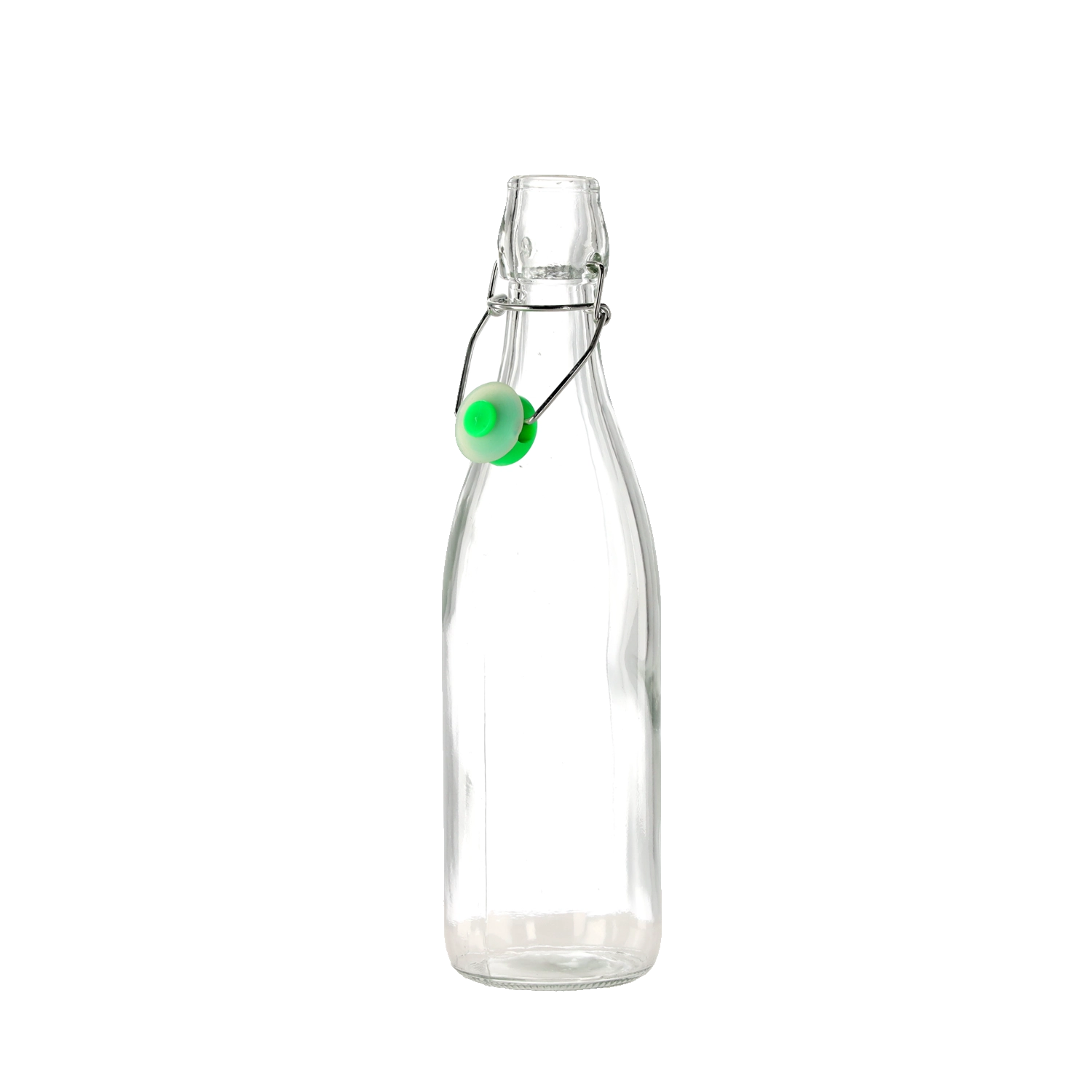 Praktična steklena steklenica s prostornino 0,5 l z mehanskim zapiralom za varno in stilsko shranjevanje domačih sokov, olj ali likerjev. Hermetično zapiranje ohranja vsebino dlje svežo, prozorno steklo olajša nadzor nad količino, ponovna uporaba pa podpira okolju prijazen pristop v gospodinjstvu.