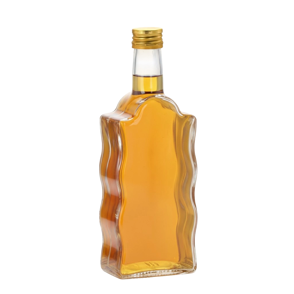 Elegantna steklena steklenica Fala s prostornino 500 ml je idealna za domače likerje, vino, sokove in sirupe. Izdelana je iz odpornega prozornega stekla za varno shranjevanje in enostaven nadzor količine. Stilsko obliko z valovitimi stranicami dopolnjuje kovinski navojni zamašek 28 mm, ki zagotavlja tesno zapiranje. Steklenica je primerna za pomivalni stroj in je odlična tudi kot darilna embalaža za domače napitke.