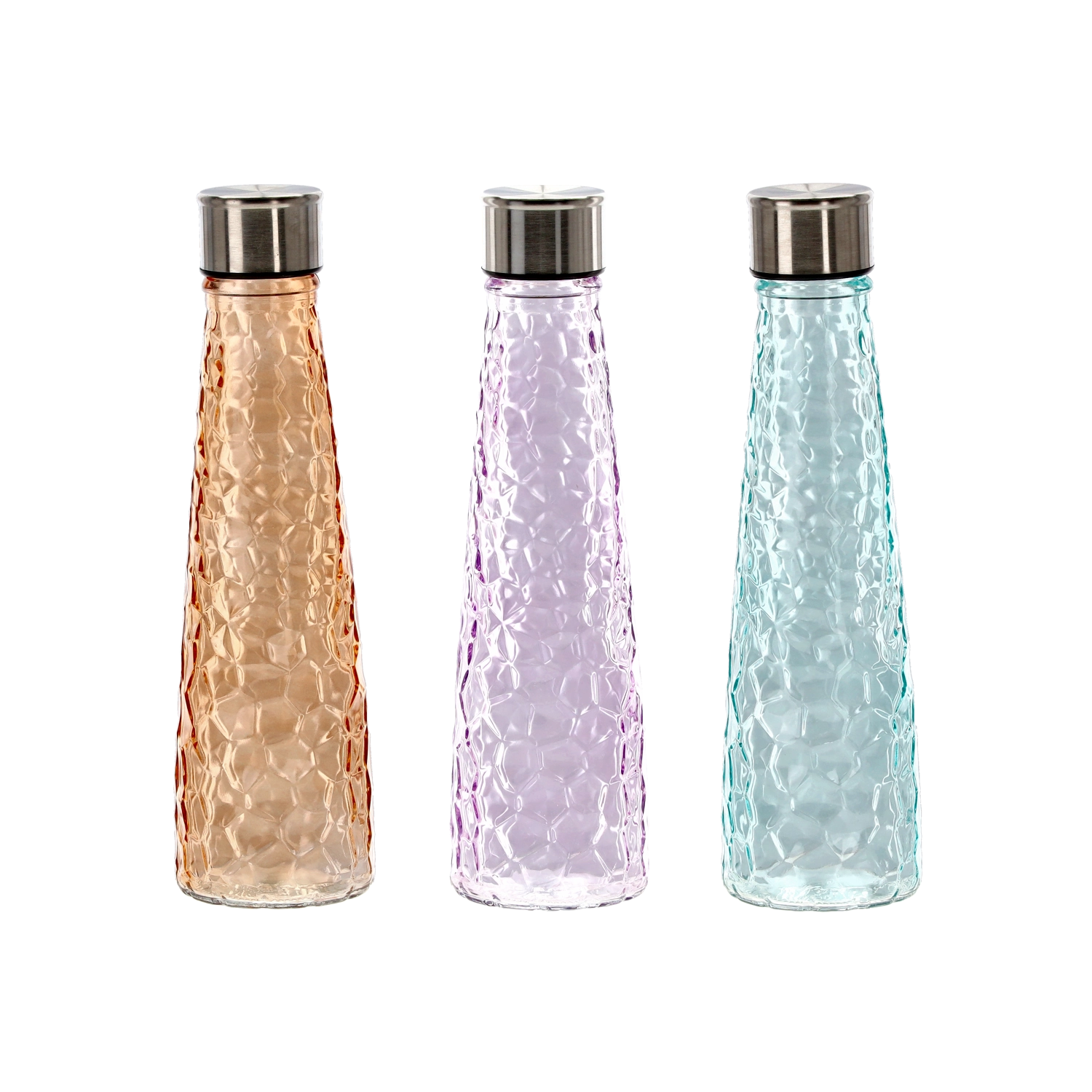 Lahka in stilska steklena steklenica s prostornino 0,5 l z nerjavečim navojnim pokrovčkom za zanesljivo tesnjenje. Odporno steklo z teksturirano površino za siguren oprijem, idealno za vsakodnevno hidracijo v službi, pri športu in na poti. Na voljo v mešanici barv za enostavno ujemanje z vašim slogom.