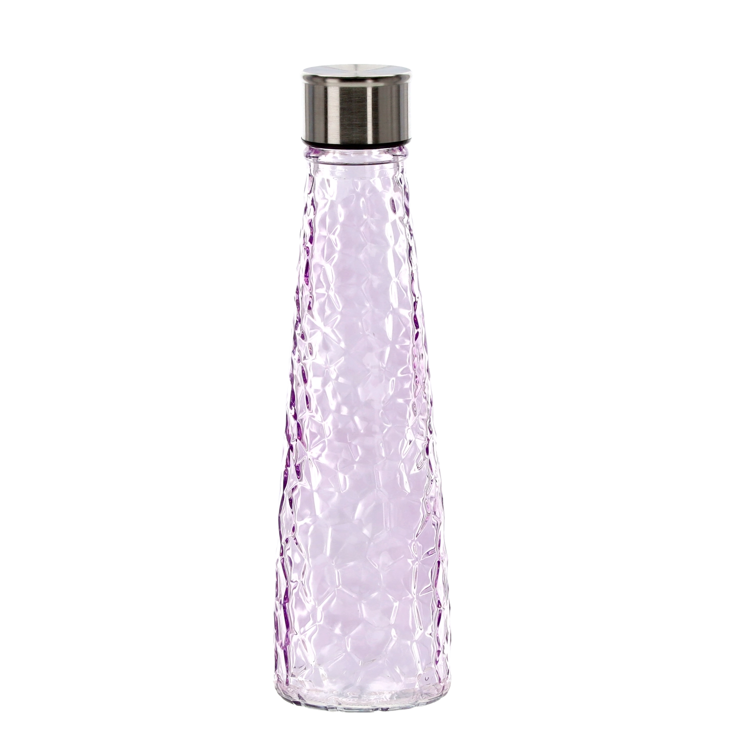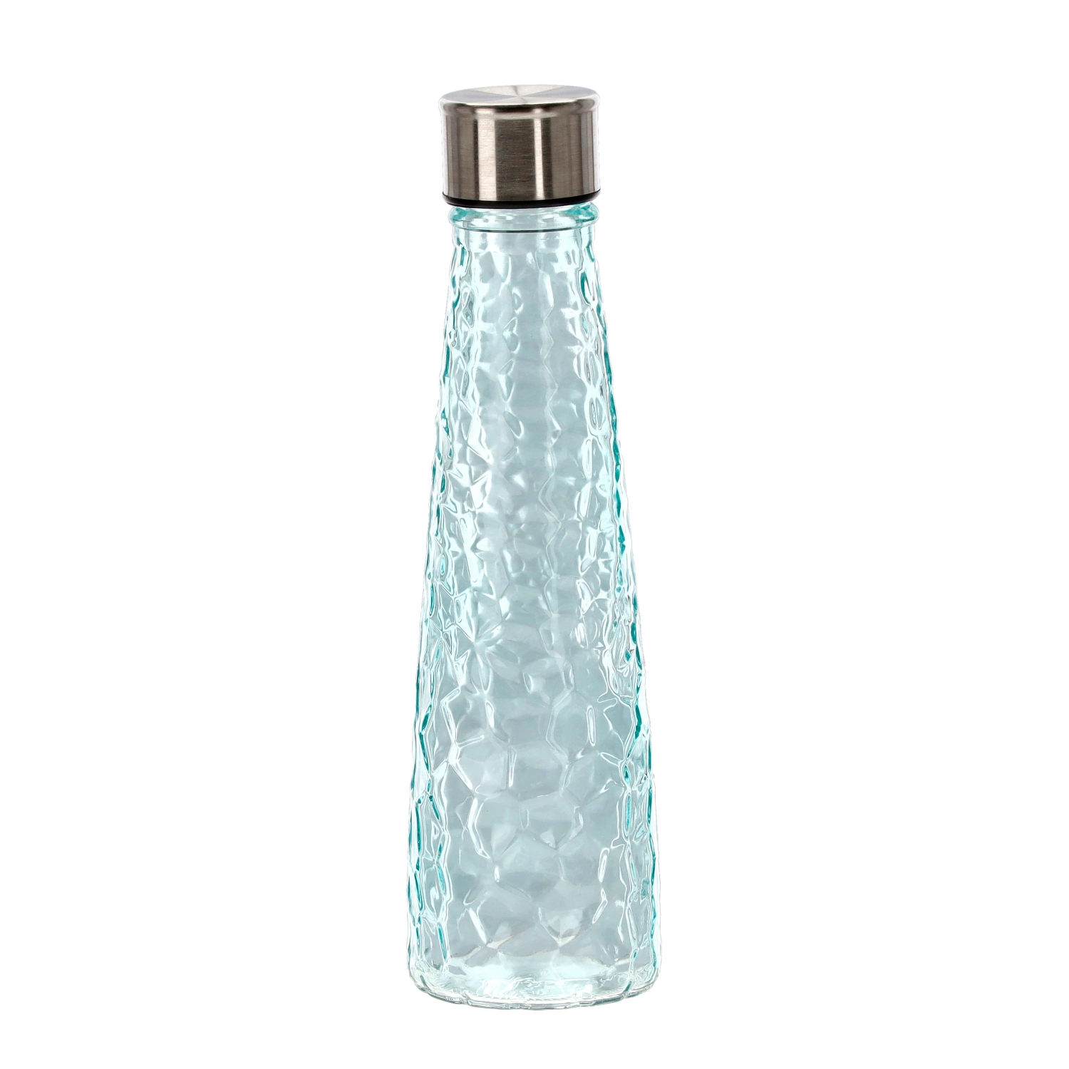 Ta steklena steklenica s prostornino 0,5 litra združuje eleganten dizajn in praktičnost. Ohišje iz odpornega stekla z nežnim kladivastim/fasetiranim vzorcem udobno leži v roki in pomaga preprečiti zdrs. Nerjaveč navojni pokrovček zanesljivo tesni, zato lahko steklenico brez skrbi nosite v torbi ali nahrbtniku.