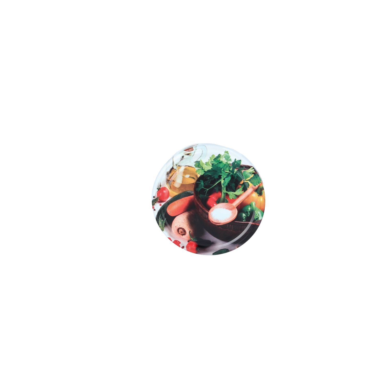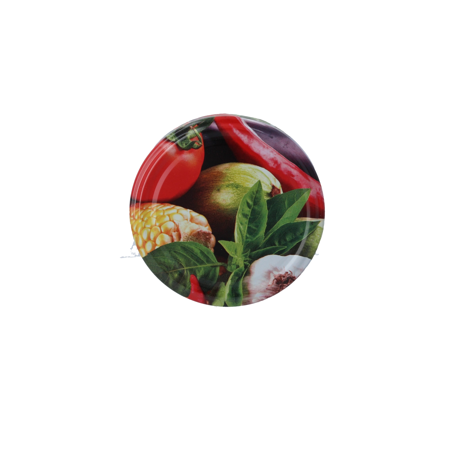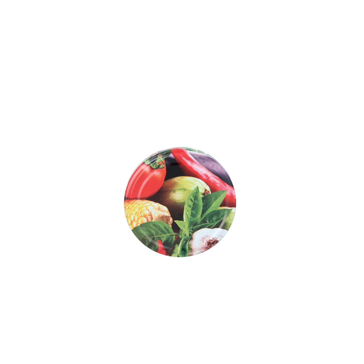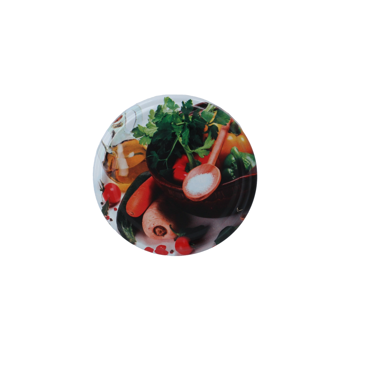 Izdelani iz visokokakovostnega kovinskega materiala, primernega za stik z živili, ščitijo pred izsuševanjem, vlago in oksidacijo. Sijoča površina z barvnim motivom zelenjave daje vložninam čist in estetski videz v vsaki kuhinji. Pokrovi so namenjeni večkratni uporabi in enostavnemu vzdrževanju.