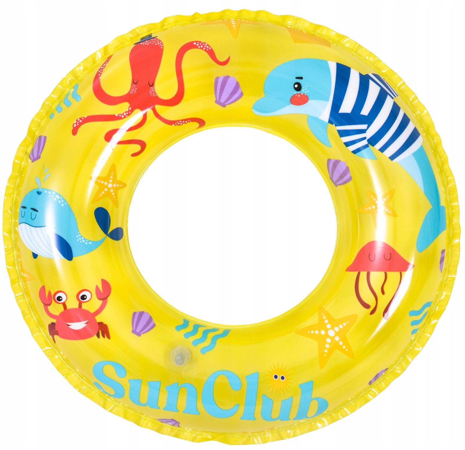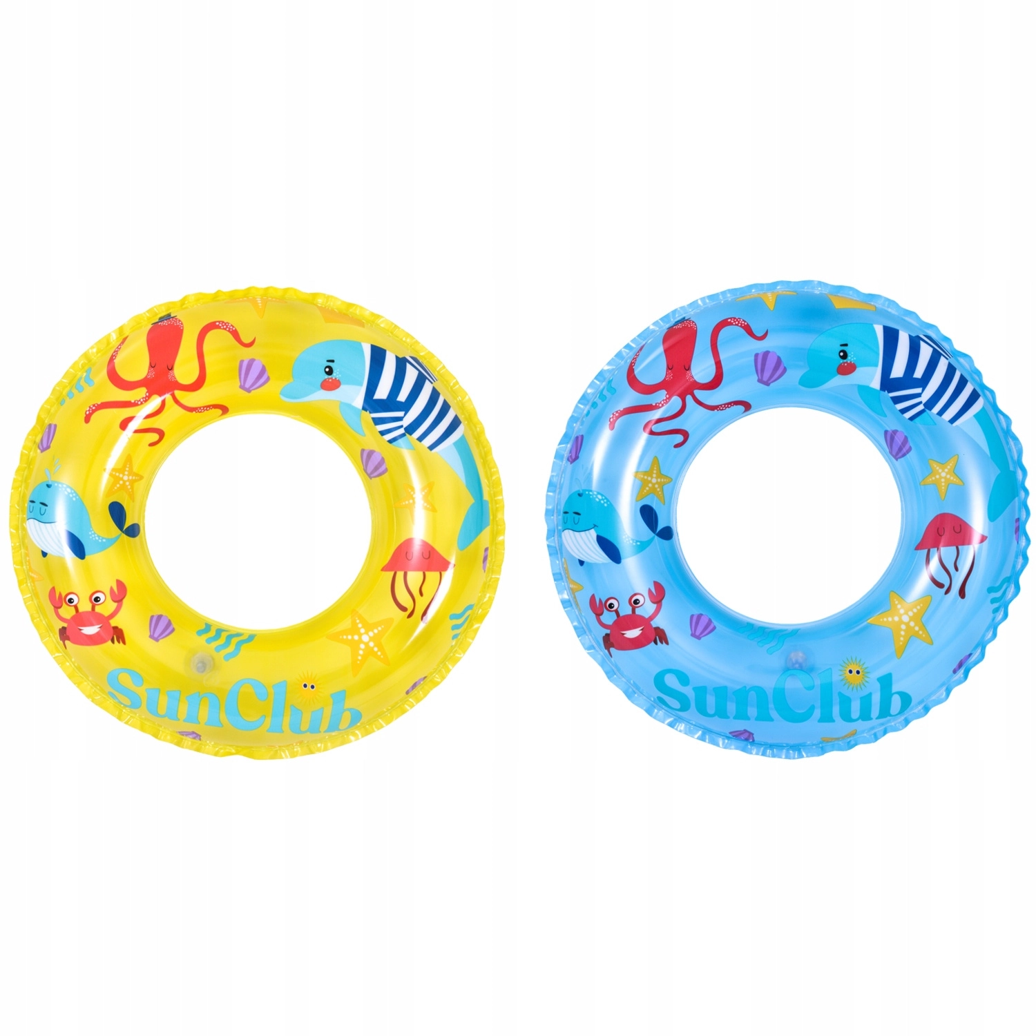 Obroč je izdelan iz vzdržljivega vinila, ki prenese poletne obremenitve in pogosto uporabo. Veseli morski motivi v modri ali rumeni različici bodo navdušili vsakega otroka in popestrili kopanje.