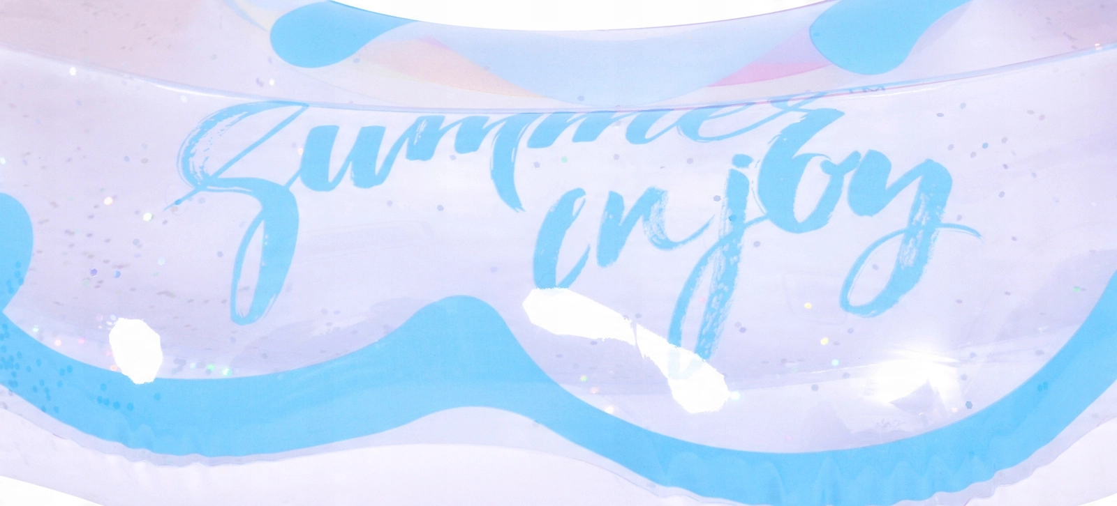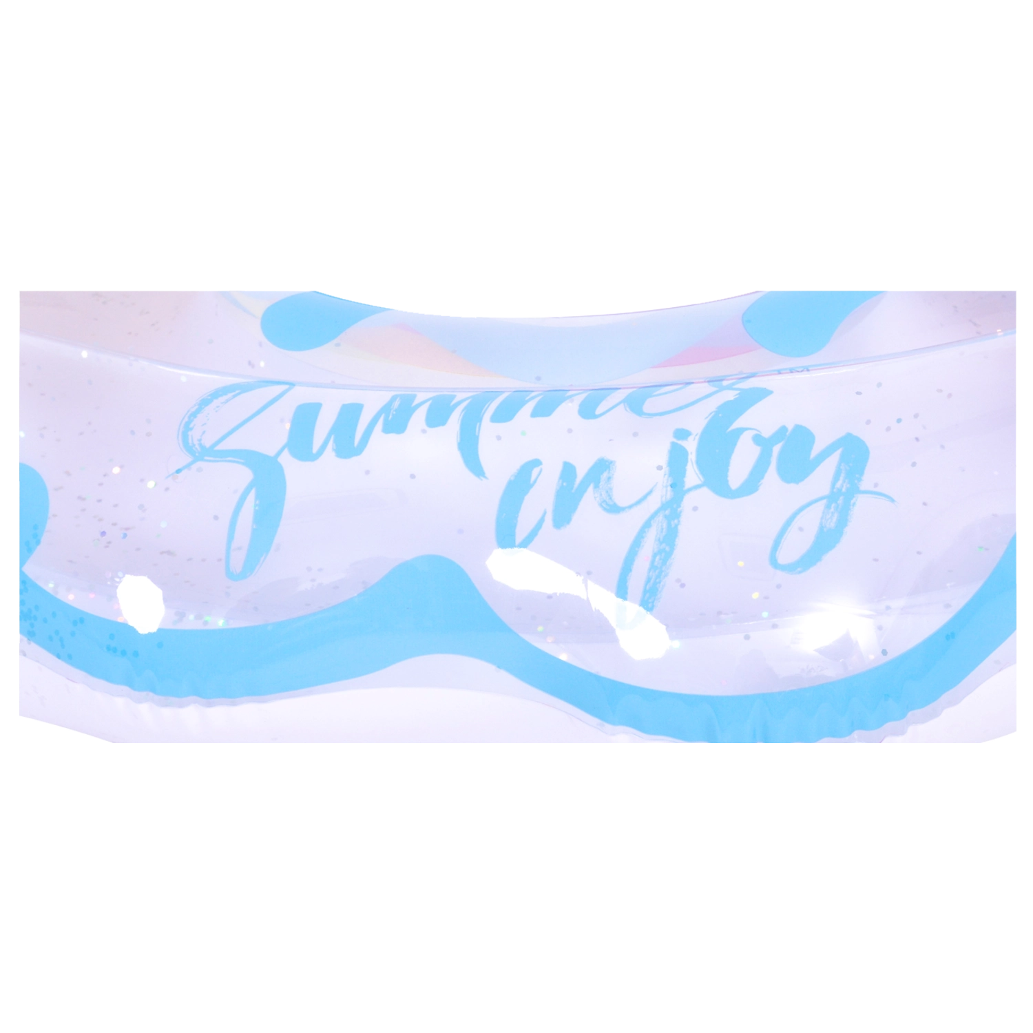 Uživajte v poletju s stilom s tem trendovskim napihljivim krogom v obliki mavrice. Prozoren dizajn z modrimi poudarki in bleščečimi bleščicami doda vodnim vragolijam poseben šarm. Idealno za bazen in morje, izdelan iz vzdržljivega vinila za dolgo življenjsko dobo ter varno plavanje in sprostitev. Velik premer 106,5 × 103 cm zagotavlja udobje za najstnike in odrasle 12+.
