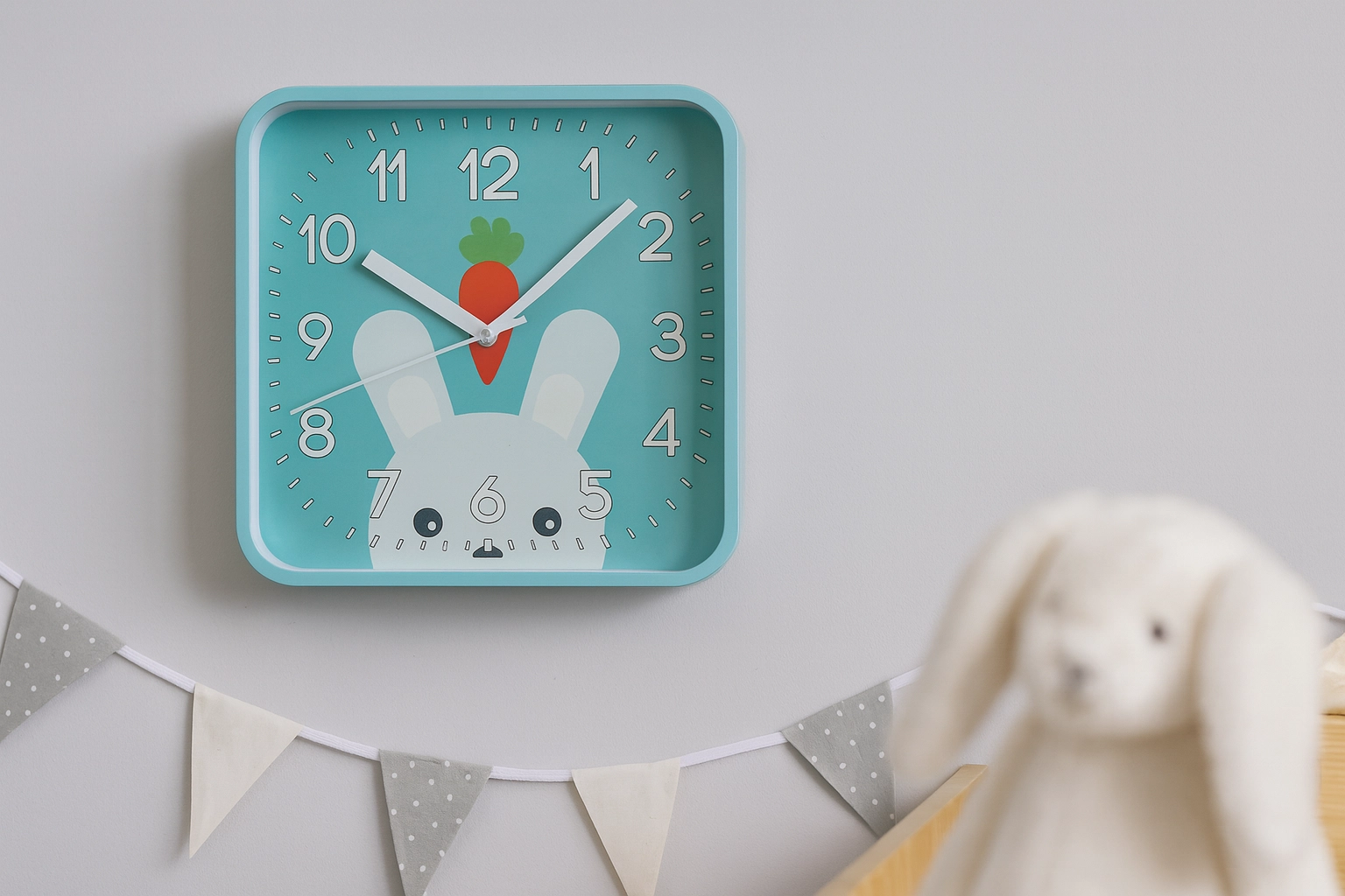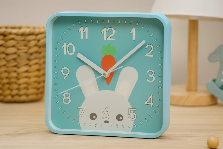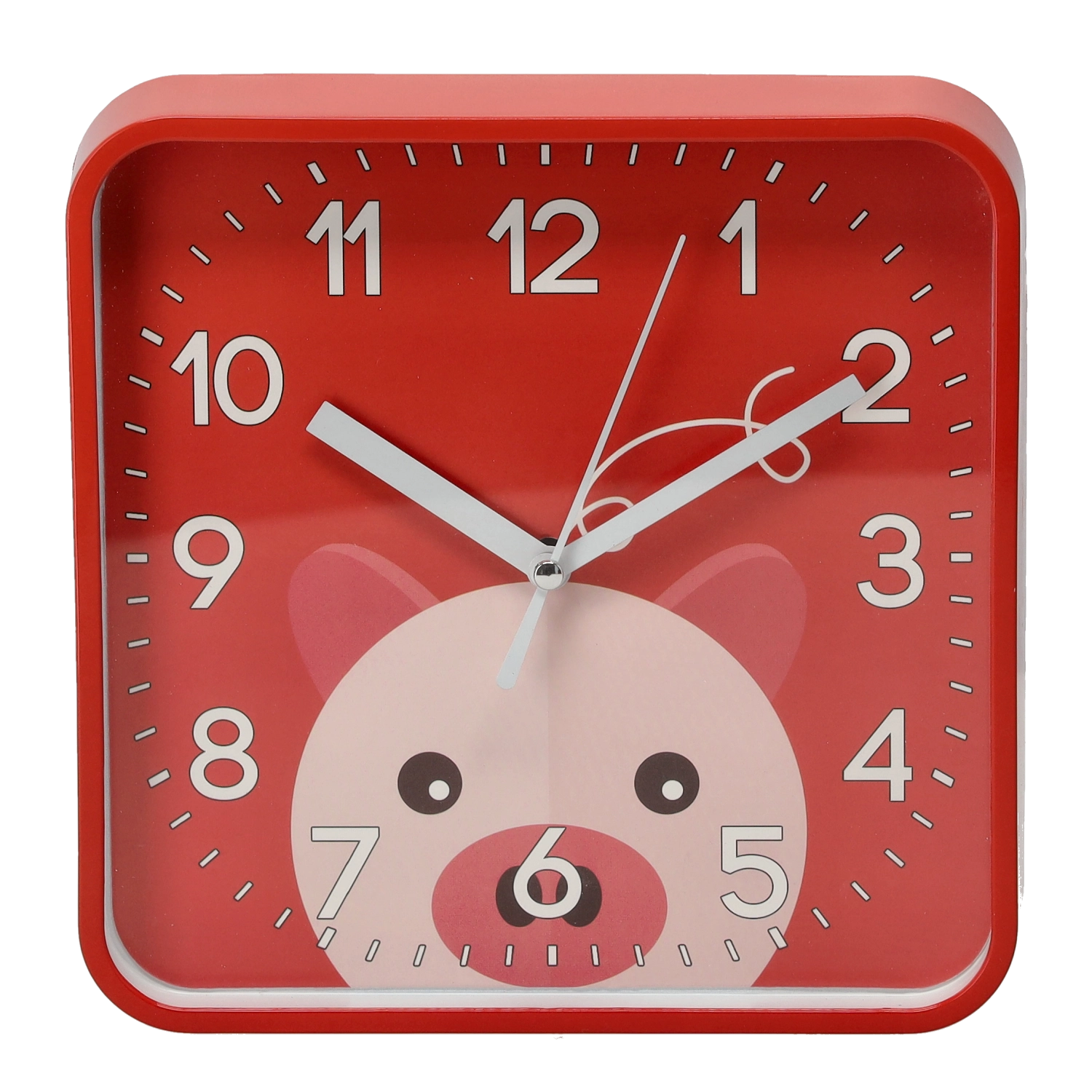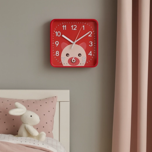 Vesele kvadratne ure z zaobljenimi robovi ustvarijo v prostoru prijetno vzdušje in spodbujajo otroško radovednost. Velike kontrastne številke in izrazite minutne črtice zagotavljajo odlično berljivost tudi od daleč, zato se otroci učijo časa naravno in na igriv način.