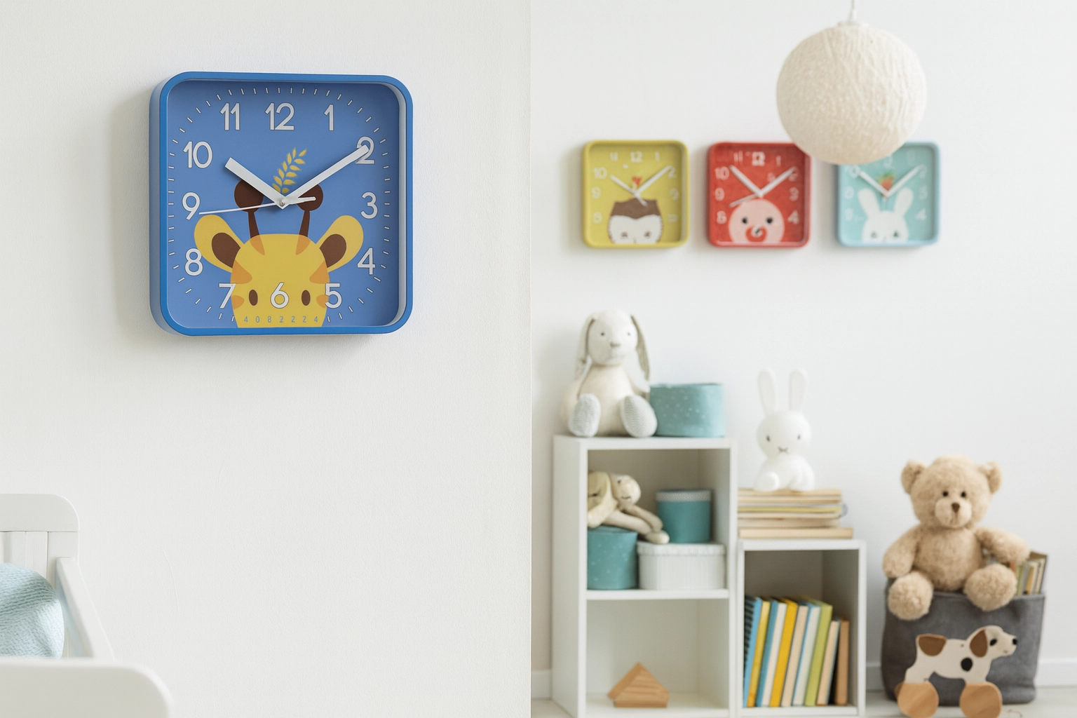 Prisrčne otroške stenske ure s kvadratnim okvirom izstopajo po živahnih barvah, velikih arabskih številkah in preglednem številčnici. Zahvaljujoč lahki in trpežni zasnovi jih je enostavno obesiti, idealne pa so za otroško sobo, vrtec ali igralnico. Zabavni živalski motivi pomagajo otrokom lažje se učiti prepoznavati čas in hkrati polepšajo notranjost.